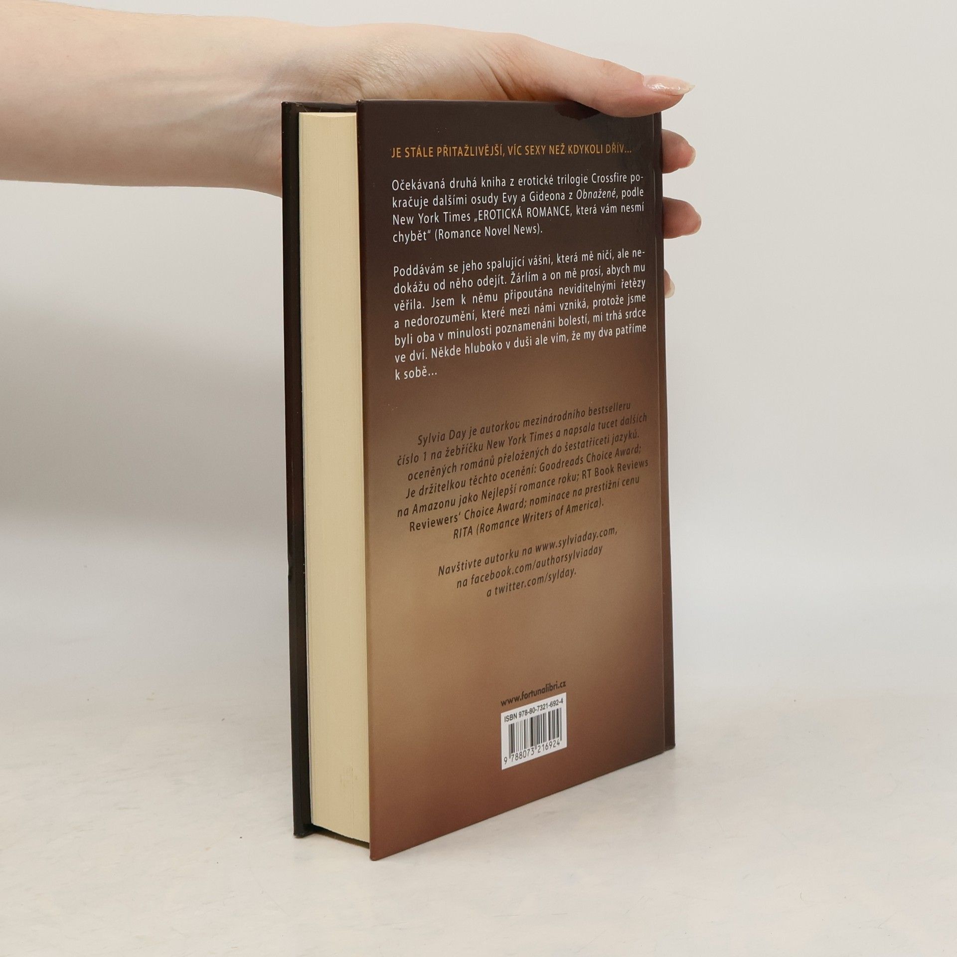 Je stále přitažlivější, víc sexy než kdykoli dřív… Druhá kniha z erotické trilogie Crossfire pokračuje dalšími osudy Evy a Gideona z Obnažené, podle New York Times „EROTICKÁ ROMANCE, která vám nesmí chybět“ (Romance Novel News). Poddávám se jeho spalující vášni, která mě ničí, ale nedokážu od něho odejít. Žárlím a on mě prosí, abych mu věřila. Jsem k němu připoutána neviditelnými řetězy a nedorozumění, které mezi námi vzniká, protože jsme byli oba v minulosti poznamenáni bolestí, mě trhá srdce ve dví. Někde hluboko v duši ale vím, že my dva patříme k sobě…