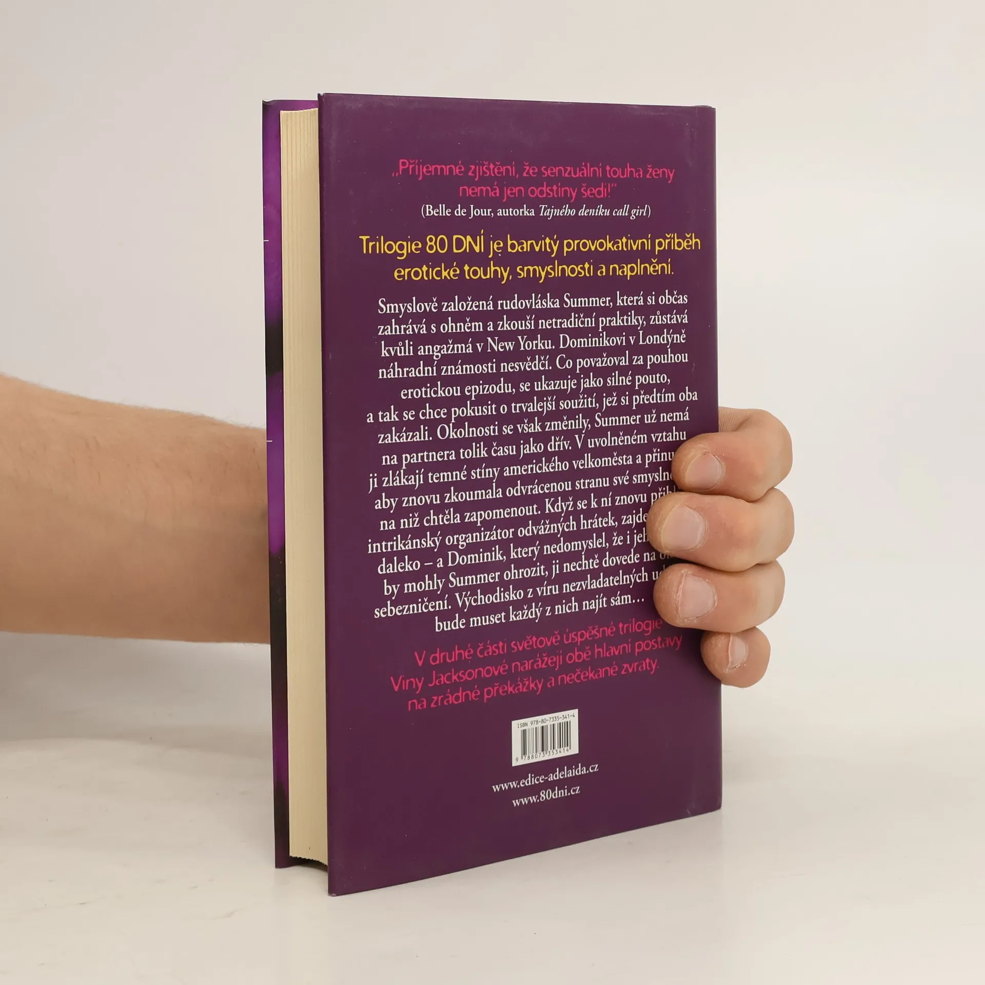 Smyslově založená rudovláska Summer, která si občas zahrává s ohněm a zkouší netradiční praktiky, zůstává kvůli angažmá v New Yorku. Dominikovi v Londýně náhradní známosti nesvědčí. Co považoval za pouhou erotickou epizodu, se ukazuje jako silné pouto, a tak se chce pokusit o trvalejší soužití, jež si předtím oba zakázali. Okolnosti se však změnily, Summer už nemá na partnera tolik času jako dřív. V uvolněném vztahu ji zlákají temné stíny amerického velkoměsta a přinutí ji, aby znovu zkoumala odvrácenou stranu své smyslnosti, na niž chtěla zapomenout. Když se k ní znovu přiblíží intrikánský organizátor odvážných hrátek, zajde vše příliš daleko – a Dominik, který nedomyslel, že i jeho touhy by mohly Summer ohrozit, ji nechtě dovede na okraj sebezničení. Východisko z víru nezvladatelných událostí bude muset každý z nich najít sám… V druhé části světově úspěšné trilogie Viny Jacksonové narážejí obě hlavní postavy na zrádné překážky a nečekané zvraty.