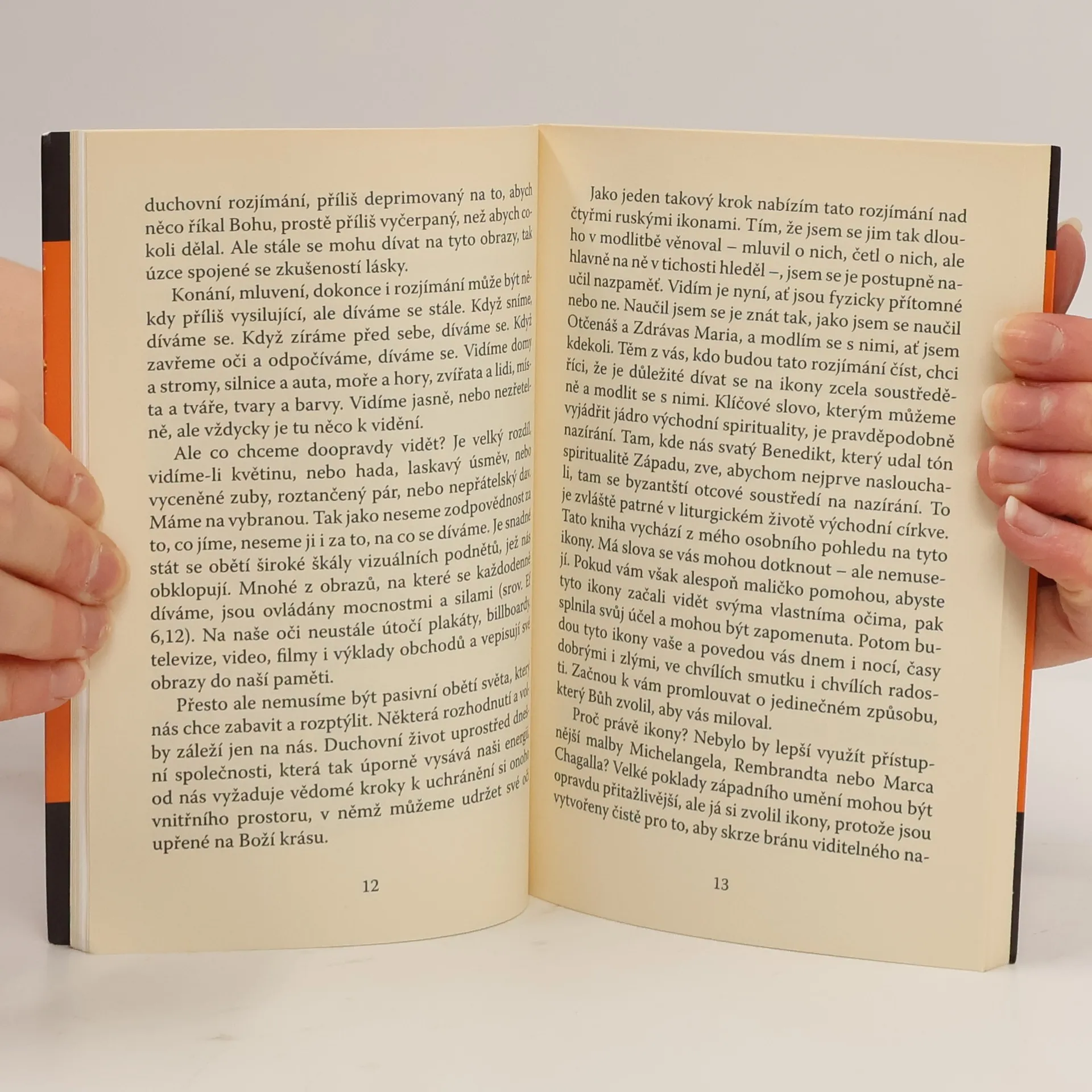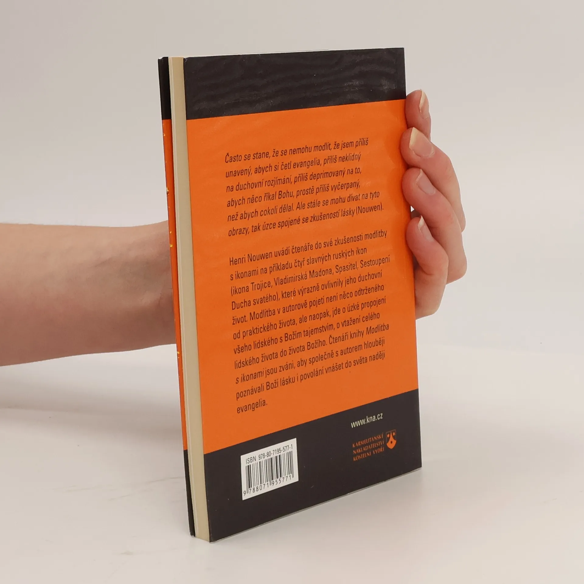 Často se stane, že se nemohu modlit, že jsem příliš unavený, abych si četl evangelia, příliš neklidný na duchovní rozjímání, příliš deprimovaný na to, abych něco říkal Bohu, prostě příliš vyčerpaný, než abych cokoli dělal. Ale stále se mohu dívat na tyto obrazy, tak úzce spojené se zkušeností lásky (Nouwen). Henri Nouwen uvádí čtenáře do své zkušenosti modlitby s ikonami na příkladu čtyř slavných ruských ikon (ikona Trojice, Vladimirská Madona, Kristus, Seslání Ducha svatého), které výrazně ovlivnily jeho duchovní život. Modlitba v autorově pojetí není něco odtrženého od praktického života, ale naopak, jde o úzké propojení všeho lidského s Božím tajemstvím, o vtažení celého lidského života do života Božího. Čtenáři knihy Modlitba s ikonami jsou zváni, aby společně s autorem hlouběji poznávali Boží lásku i povolání vnášet do světa naději evangelia.