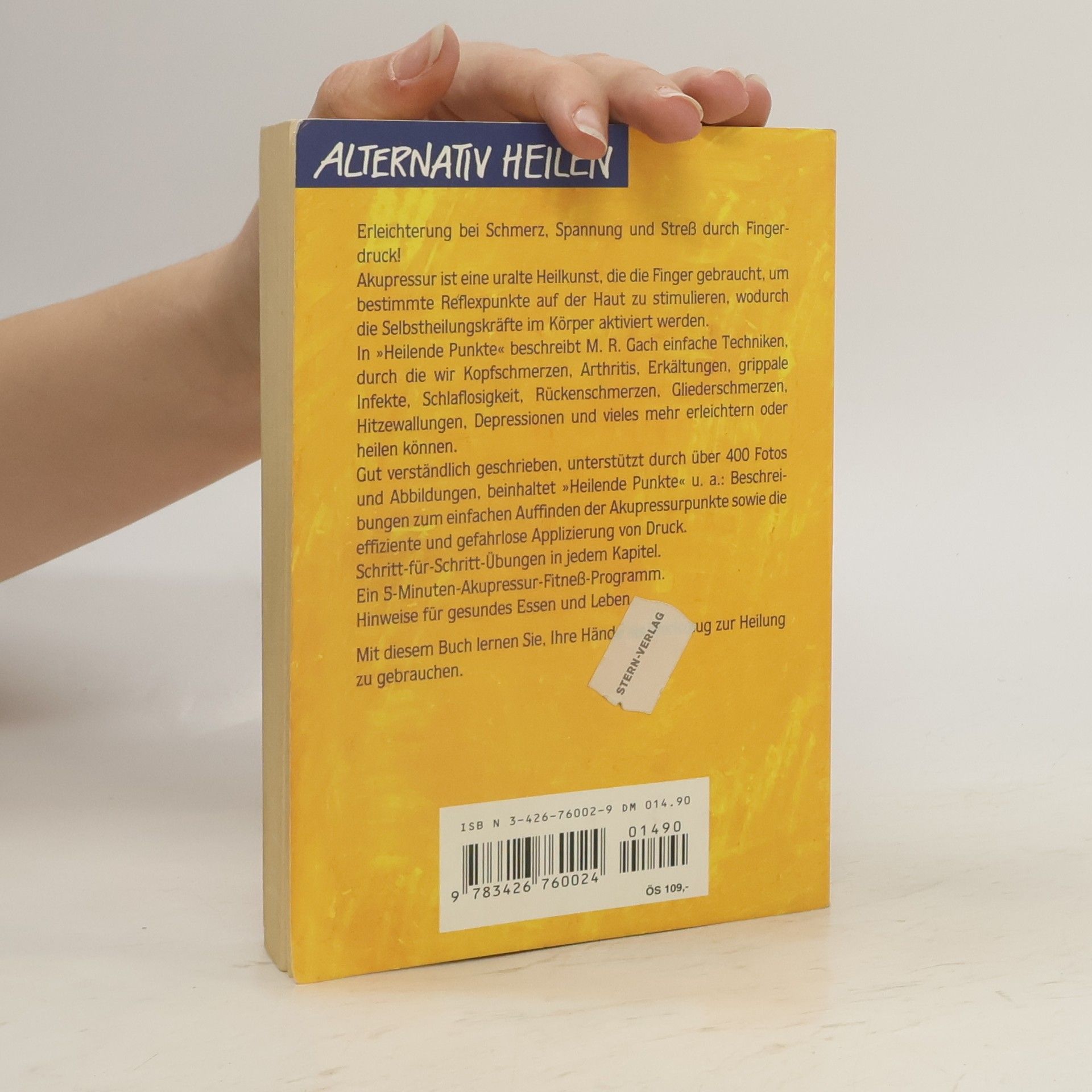 Erleichterung bei Schmerz, Spannung und Streß durch Fingerdruck! Akupressur ist eine uralte Heilkunst, die die Finger gebraucht, um bestimmte Reflexpunkte auf der Haut zu stimulieren, wodurch die Selbstheilungskräfte im Körper aktiviert werden. In »Heilende Punkte« beschreibt M. R. Gach einfache Techniken, durch die wir Kopfschmerzen, Arthritis, Erkältungen, grippale Infekte, Schlaflosigkeit, Rückenschmerzen, Gliederschmerzen, Hitzewallungen, Depressionen, und vieles mehr erleichtern oder heilen können. Gut verständlich geschrieben, unterstützt durch über 400 Fotos und Abbildungen, beinhaltet »Heilende Punkte« u. a.: Beschreibungen zum einfachen Auffinden der Akupressurpunkte sowie die effiziente und gefahrlose Applizierung von Druck. Schritt-für-Schritt-Übungen in jedem Kapitel. Ein 5-Minuten-Akupressur-Fitneß-Programm. Hinweise für gesundes Essen und Leben. Mit diesem Buch lernen Sie, Ihre Hände als Werkzeuge zur Heilung zu gebrauchen.