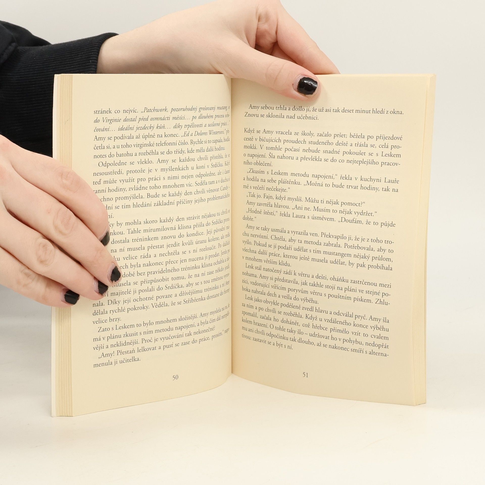 Amy se musí obejít bez Tomovy pomoci a zoufale se snaží zvládnout všechnu práci v Srdíčku. Do útulku přijíždí krásný nový kůň, divoký mustang jménem Lesk, a Amy by si toužebně přála nějak k tomu hrdému a nezkrotnému koni proniknout a navázat s ním spojení. Jenže Lesk je opravdu divoký a zdá se, že nechce mít s lidmi nic společného. Amy je bezradná. Potřebuje, aby jí někdo pomohl – potřebuje Toma. Ale Tom je v hlubokém komatu a Amy neví, jestli se ještě někdy probere k vědomí. A pokud ano, pozná ji vůbec? Bude pak stát o to, aby dál patřil do jejího života a staral se spolu s ní o chod Srdíčka?