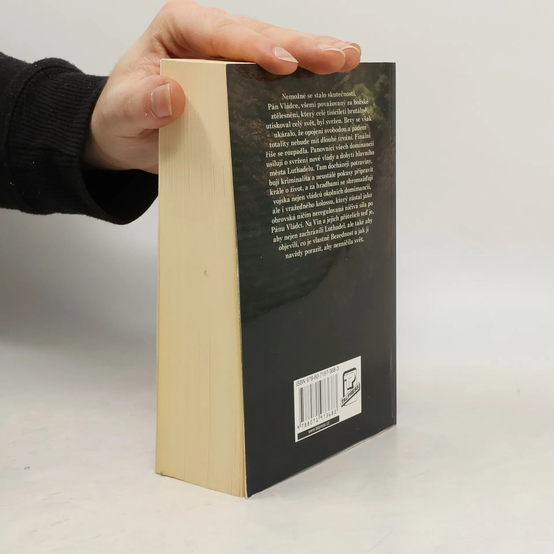 Nemožné se stalo skutečností. Pán Vládce, všemi považovaný za božské ztělesnění, který celé tisíciletí brutálně utiskoval celý svět, byl svržen. Brzy se však ukázalo, že opojení svobodou a pádem totality nebude mít dlouhé trvání. Finální říše se rozpadla. Panovníci všech dominancií usilují o svržení nové vlády a dobytí hlavního města Luthadelu. Tam docházejí potraviny, bují kriminalita a neustálé pokusy připravit krále o život, a za hradbami se shromažďují vojska nejen vládců okolních domimancií, ale i vražedného kolossu, který zůstal jako obrovská ničím neregulovaná ničivá síla po Pánu Vládci... Na Vin a jejích přátelích teď je, aby nejen zachránili Luthadel, ale také aby objevili, co je vlastně Bezednost a jak ji navždy porazit, aby nezničila svět.
