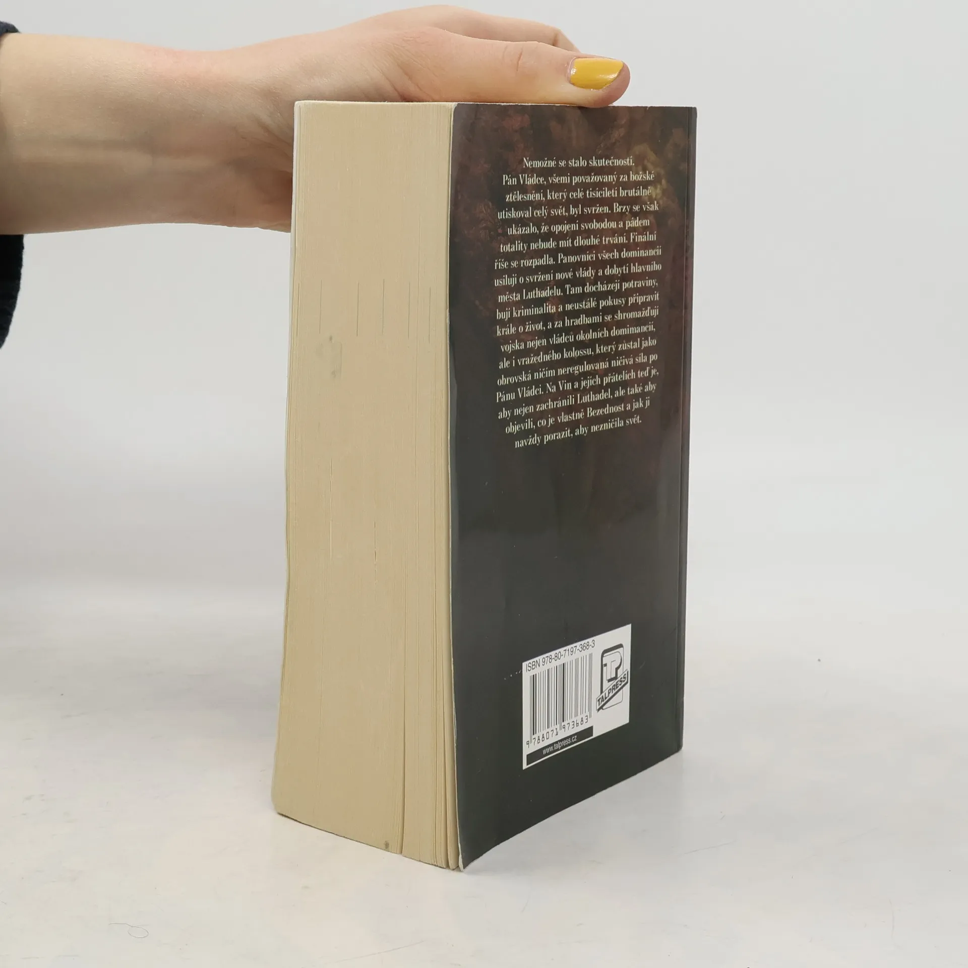 Nemožné se stalo skutečností. Pán Vládce, všemi považovaný za božské ztělesnění, který celé tisíciletí brutálně utiskoval celý svět, byl svržen. Brzy se však ukázalo, že opojení svobodou a pádem totality nebude mít dlouhé trvání. Finální říše se rozpadla. Panovníci všech dominancií usilují o svržení nové vlády a dobytí hlavního města Luthadelu. Tam docházejí potraviny, bují kriminalita a neustálé pokusy připravit krále o život, a za hradbami se shromažďují vojska nejen vládců okolních domimancií, ale i vražedného kolossu, který zůstal jako obrovská ničím neregulovaná ničivá síla po Pánu Vládci... Na Vin a jejích přátelích teď je, aby nejen zachránili Luthadel, ale také aby objevili, co je vlastně Bezednost a jak ji navždy porazit, aby nezničila svět.
