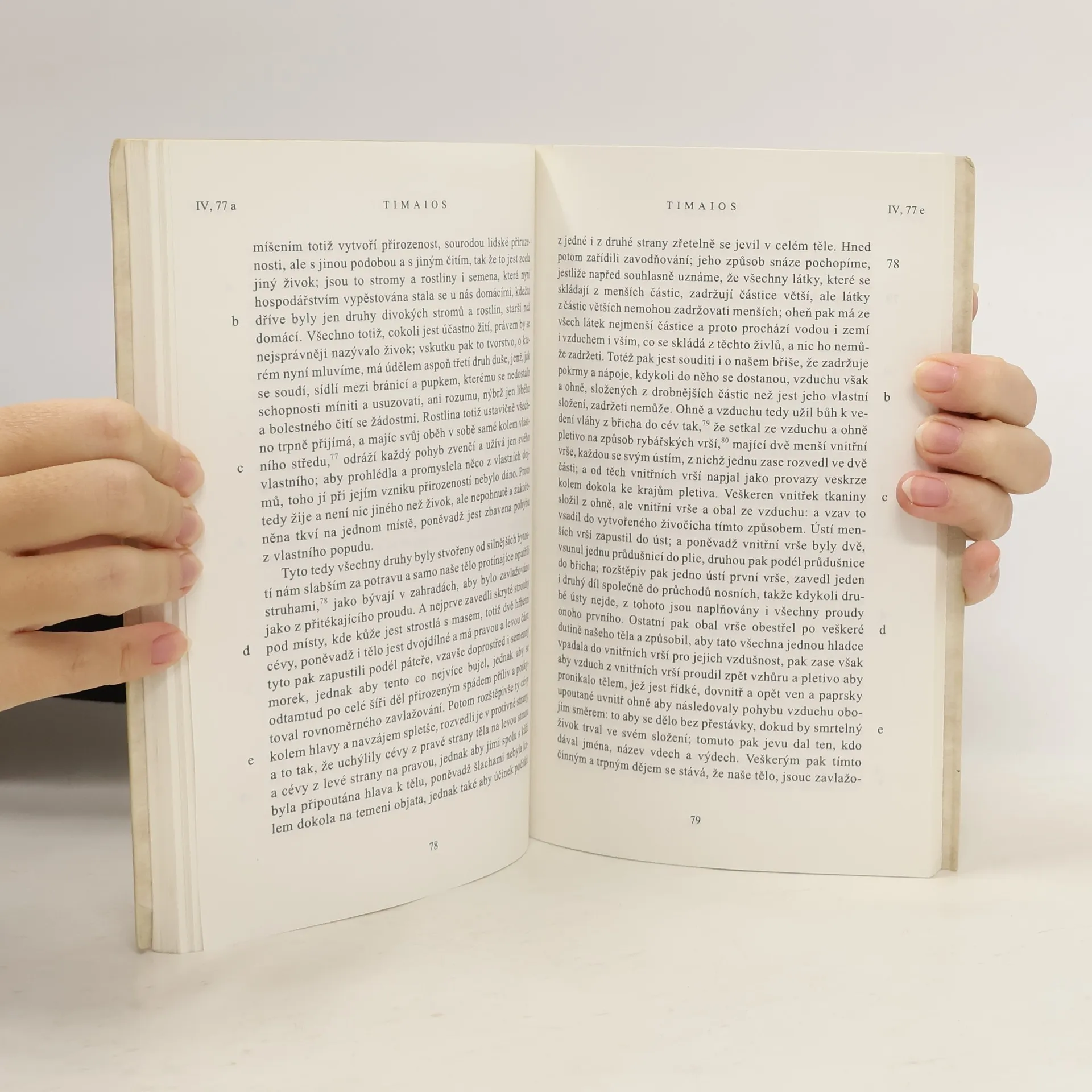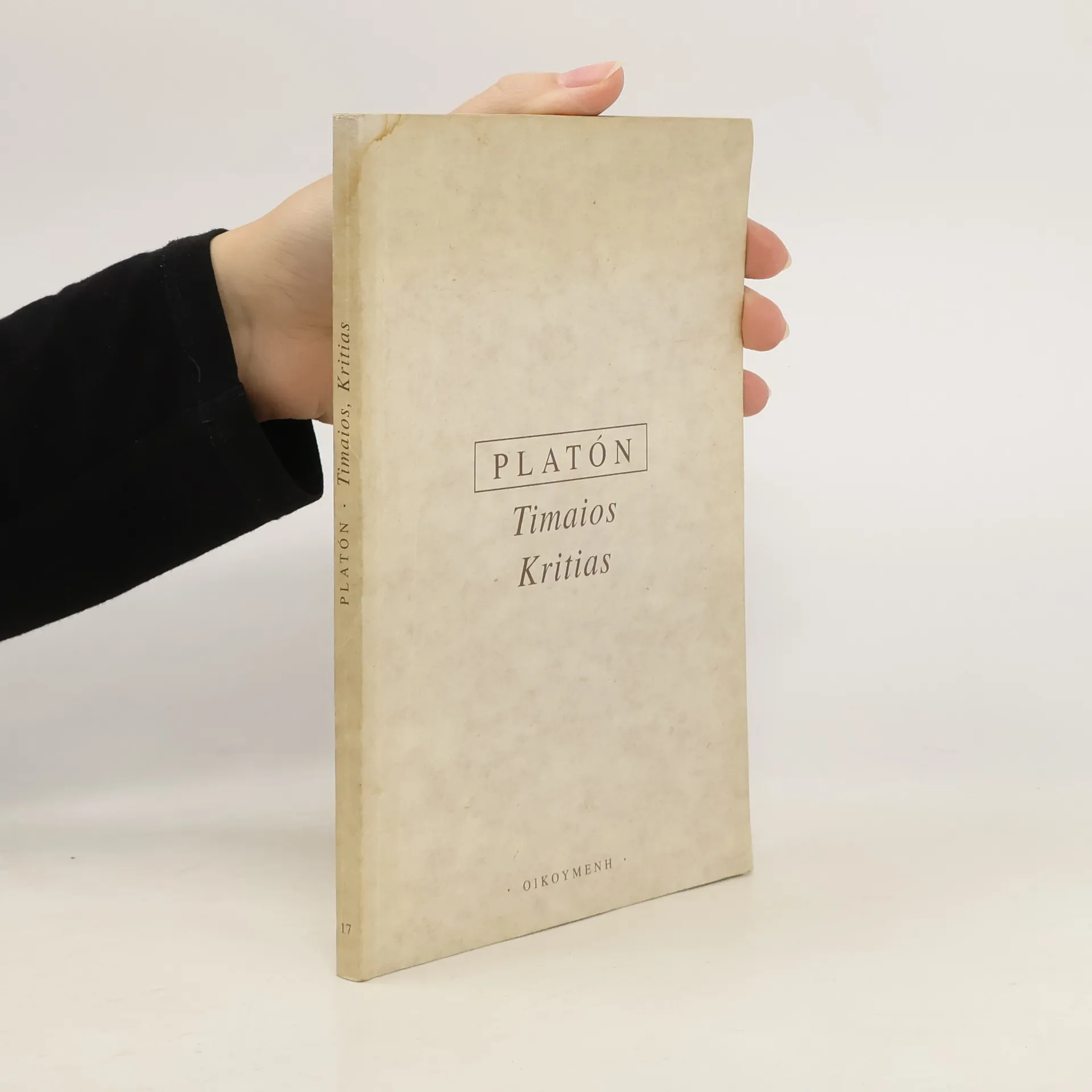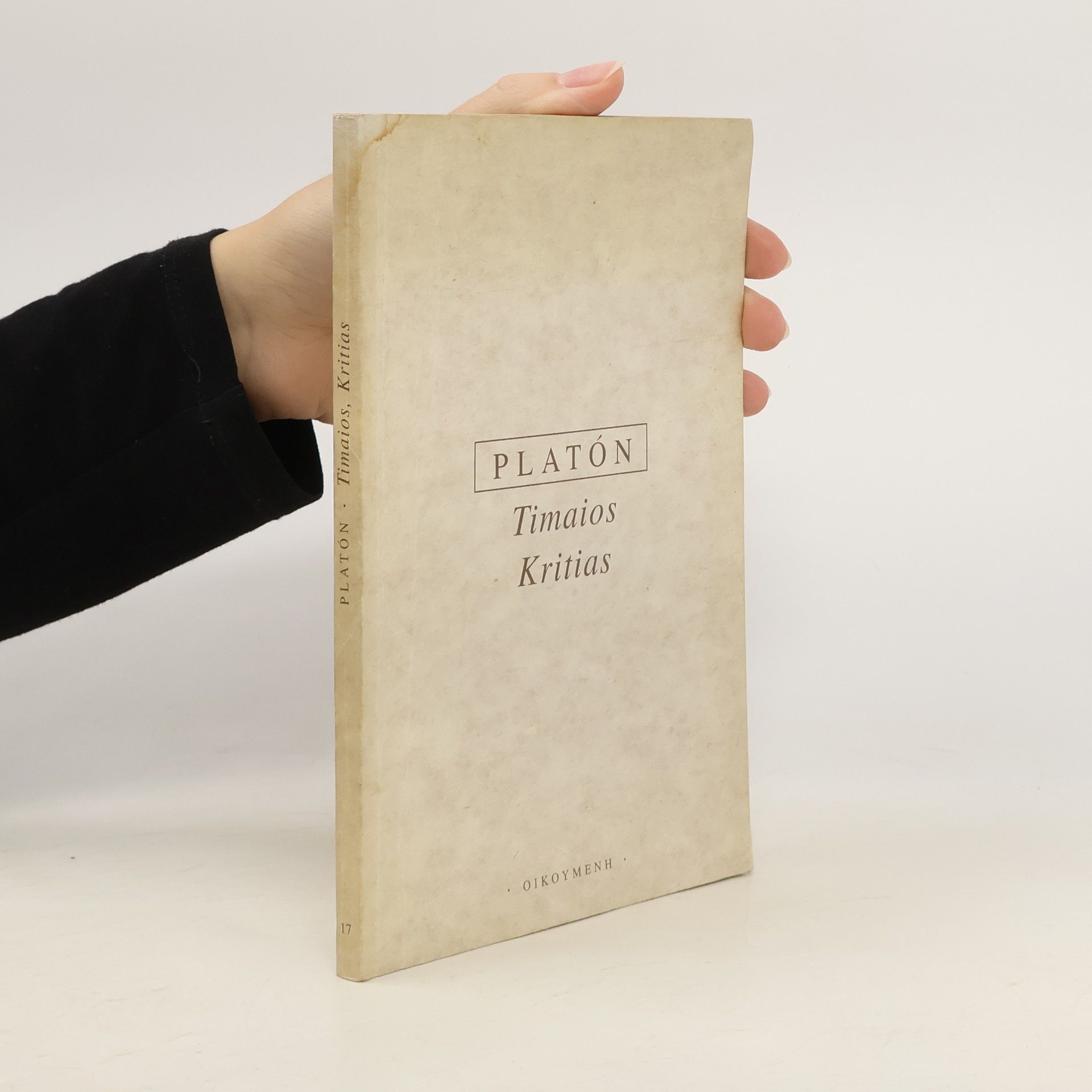Dialogy. Timaios líčí vznik světa, znovuobnovení učení o idejích za pomoci pythagorovské číselné spekulace; Kritiás je nedokončený, obsahuje „politický mýtus“ o Atlantidě. Dotisk třetího opraveného vydání z roku 2003.