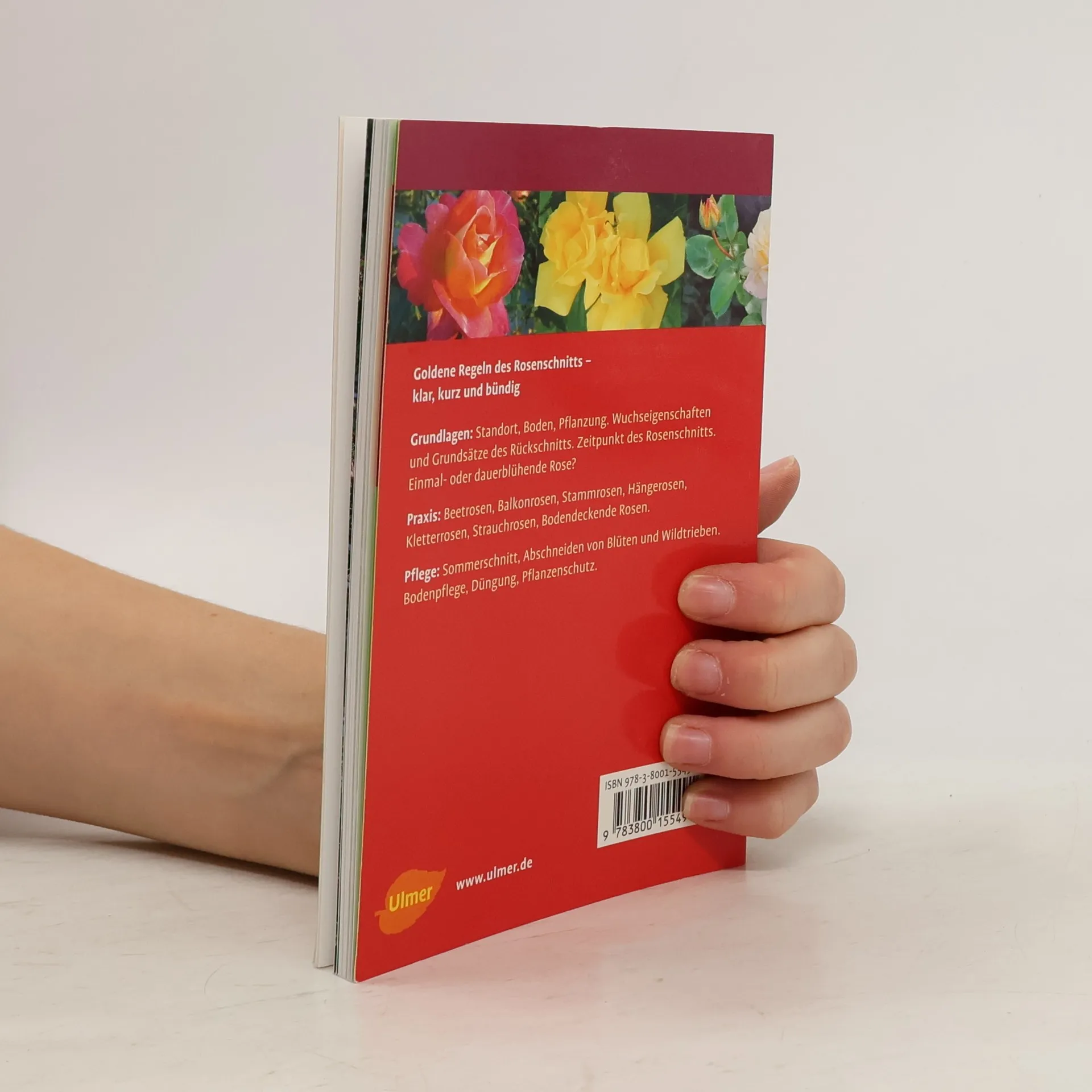 Grundlagen: Standort, Boden, Pflanzung. Wuchseigenschaften und Grundsätze des Rosenrückschnitts. Zeitpunkt des Rosenschnitts. Einmal- oder dauerblühende Rose? Praxis: Beetrosen, Balkonrosen, Stammrosen, Hängerosen, Kletterrosen, Strauchrosen, Bodendeckende Rosen. Pflege: Sommerschnitt, Abschneiden von Blüten und Wildtrieben. Bodenpflege, Düngung, Pflanzenschutz