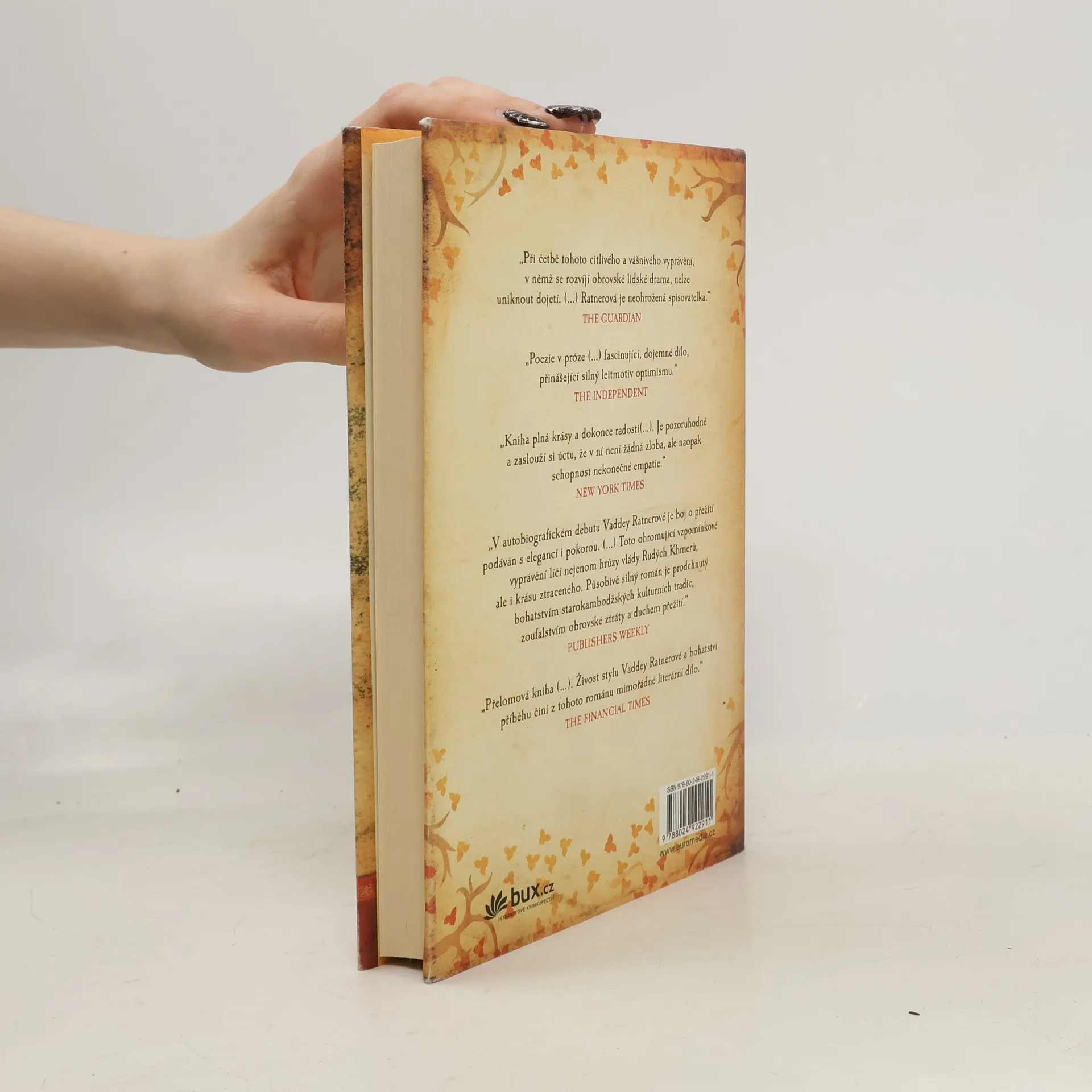 Výjimečný debutový román Vaddey Ratnerové, autorky s nevšedním citem pro jazyk, o naději, síle dětské představivosti, lásky k příběhům i k životu samotnému, který se odehrává na pozadí jedné z nejtemnějších a nejbrutálnějších kapitol lidské historie. Píše se rok 1975 a pro sedmiletou Raami ze dne na den končí dětství. Její otec se za rozbřesku vrací ze své pravidelné procházky se zprávou o bojích, které právě zachvátily ulice Phnompenhu, hlavního města Kambodže. Chaos revoluce a následný teror záhy rozdrtí všechny představy, které doposud holčička o světě měla. Ve světě novém, v němž se smrt, hladovění a tvrdá práce na hranici fyzických možností stanou něčím tak hrůzně všedním a všudypřítomným, se malá Raami upne k tomu jedinému, co jí z násilně přervaného dětství zbylo – k tradičním kambodžským mýtům a legendám, které jí vyprávěl otec. V ovzduší brutálního systematického teroru, kde je paměť brána jako nemoc a záminka popravě, se dívka snaží s jejich pomocí bojovat o každý další den, kdy zůstane naživu.