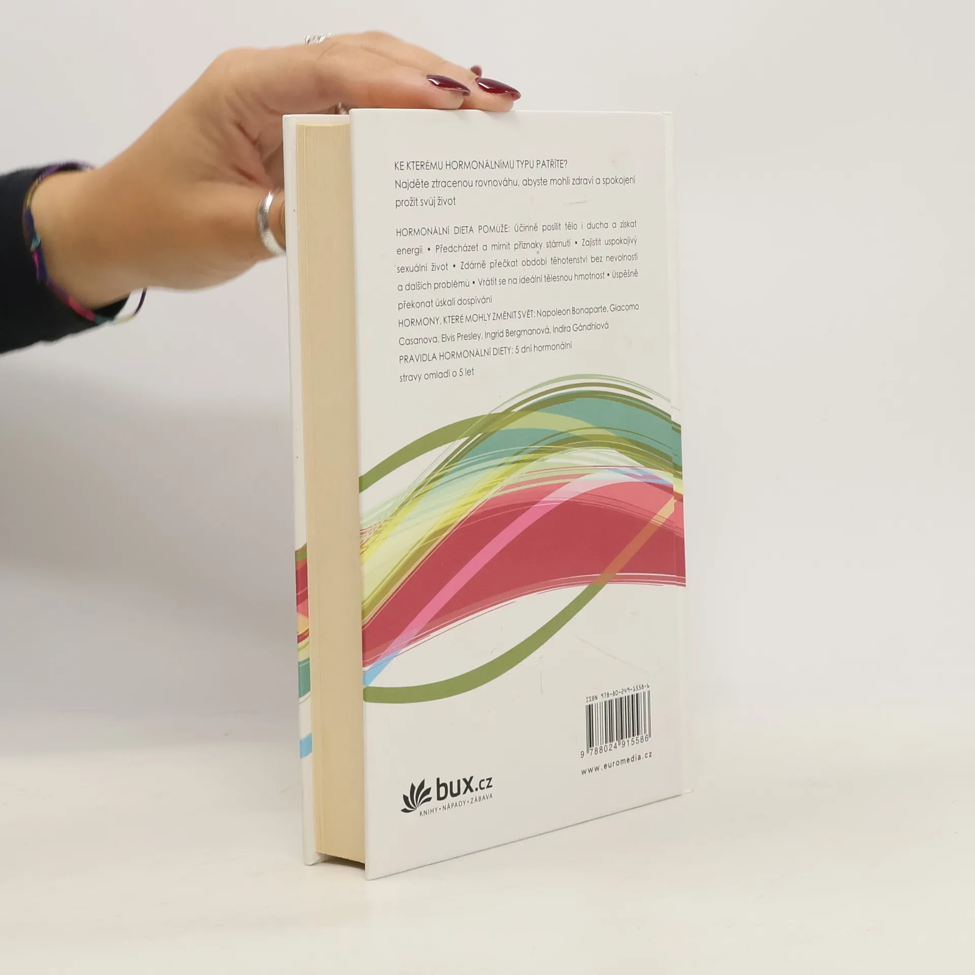 Ke kterému hormonálnímu typu patříte? Udělejte si test a najděte ztracenou rovnováhu, abyste mohli zdraví a spokojení prožít svůj život. Nová metoda a hormonální dieta pomohou: účinně posílit tělo i ducha a získat energii, předcházet a mírnit příznaky stárnutí, zajistit uspokojivý sexuální život, zdárně přečkat období těhotenství bez nevolností a dalších problémů, vrátit se na správnou tělesnou hmotnost. Pravidla hormonální diety zní: Pět dní hormonální stravy omladí o pět let.