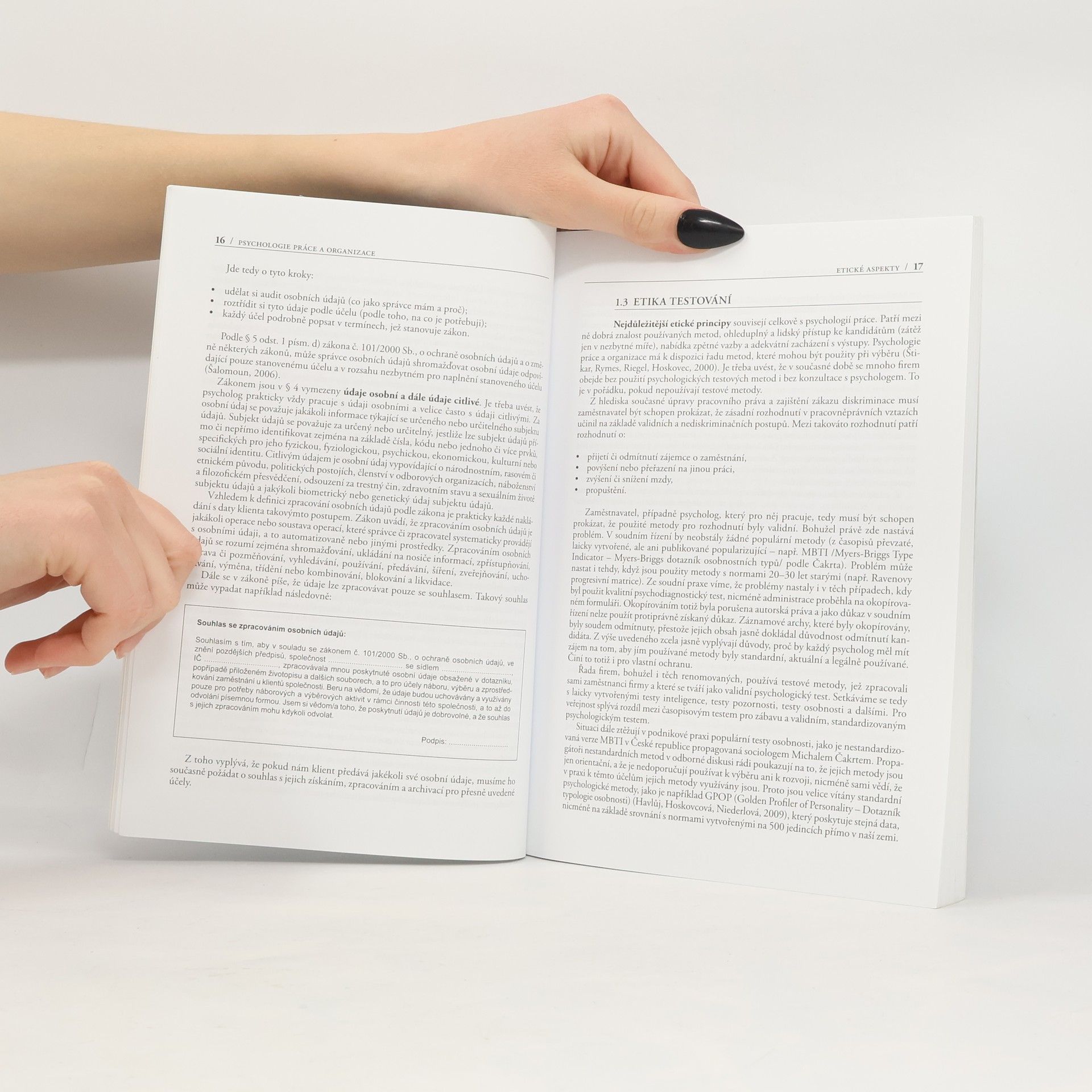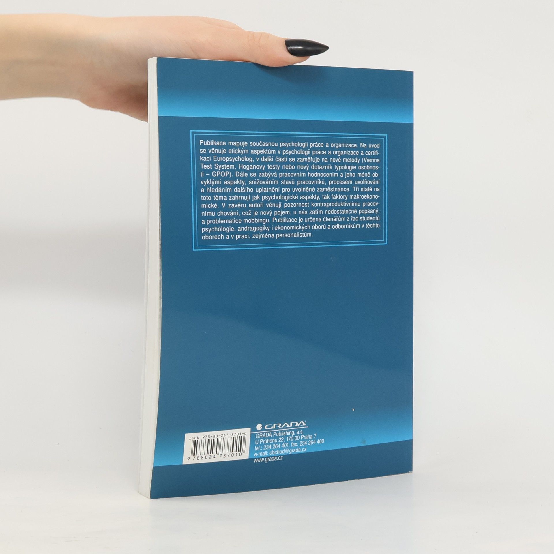 Publikace mapuje současnou psychologii práce a organizace. Na úvod se věnuje etickým aspektům v psychologii práce a organizace a certifikaci Europsycholog, v další části se zaměřuje na nové metody (např. Vienna Test System, Hoganovy testy nebo nový dotazník typologie osobnosti – GPOP). Dále se zabývá pracovním hodnocením a jeho méně obvyklými aspekty, snižováním stavů pracovníků, procesem uvolňování a hledáním dalšího uplatnění pro uvolněné zaměstnance. Tři statě na toto téma zahrnují jak psychologické aspekty, tak faktory makroekonomické. V závěru autoři věnují pozornost kontraproduktivnímu pracovnímu chování, což je nový pojem, u nás zatím nedostatečně popsaný, a problematice mobbingu. Publikace je určena čtenářům z řad studentů psychologie, andragogiky i ekonomických oborů a odborníkům v těchto oborech a v praxi, zejména personalistům.