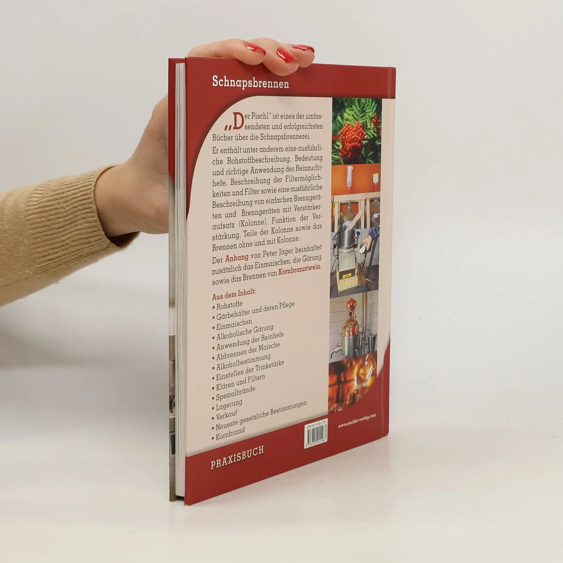 Der „Pischl“ jetzt völlig neu gestaltet! Bisher verkaufte Auflage über 120.000 Stück! Mit dem Kapitel über Kornbrand und allen relevanten gesetzlichen Bestimmungen und EU-Vorschriften ist „der Pischl” das umfassende, erfolgreichste Buch über die Schnapsbrennerei. • Rohstoffe • Gärbehälter und deren Pflege • Einmaischen • Alkoholische Gärung • Anwendung der Reinhefe • Abbrennen der Maische • Alkoholbestimmung • Einstellen der Trinkstärke • Klären und Filtern • Spezialbrände • Lagerung • Verkauf • Neueste gesetzliche Bestimmungen • Kornbrand