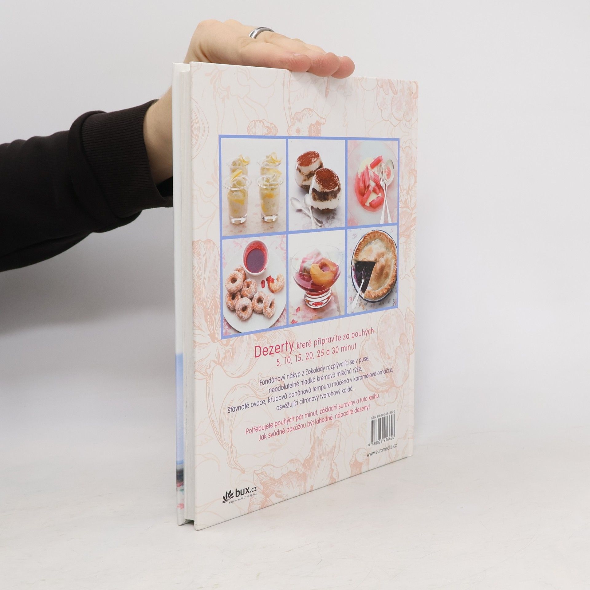 Fondánový nákyp z tmavé čokolády, neodolatelně hladká krémová mléčná rýže, šťavnaté ovoce, křupavá banánová tempura máčená v karamelové omáčce nebo osvěžující citronový tvarohový koláč... Jejich příprava zabere pouhých 5, 10, 15, 20, 25 a 30 minut. Potřebujete pár základních surovin a tuto knihu. Je tak snadné připravit lahodné, nápadité dezerty svůdných chutí a vůní!