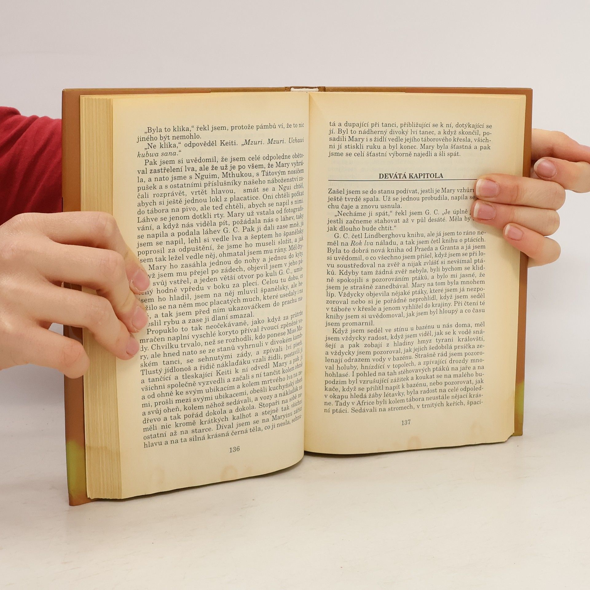 Román z autorovy pozůstalosti zpracovává jeho zážitky a dojmy z afrického safari. Román kolísající mezi autobiografií a fikcí vypráví příběh lovce, zodpovědného za vedení loveckého tábora. Ten se musí vyrovnávat s hrozbou, že tábor bude napaden znesvářenými domorodými kmeny, ale zároveň chce pomoci své ženě Mary při lovu na lva. Román vyniká nádhernými popisy africké krajiny a líčením vzrušujícího lovu zvěře, pochopením pro sílu přátelství i krásu krajiny a mentalitu místních lidí.