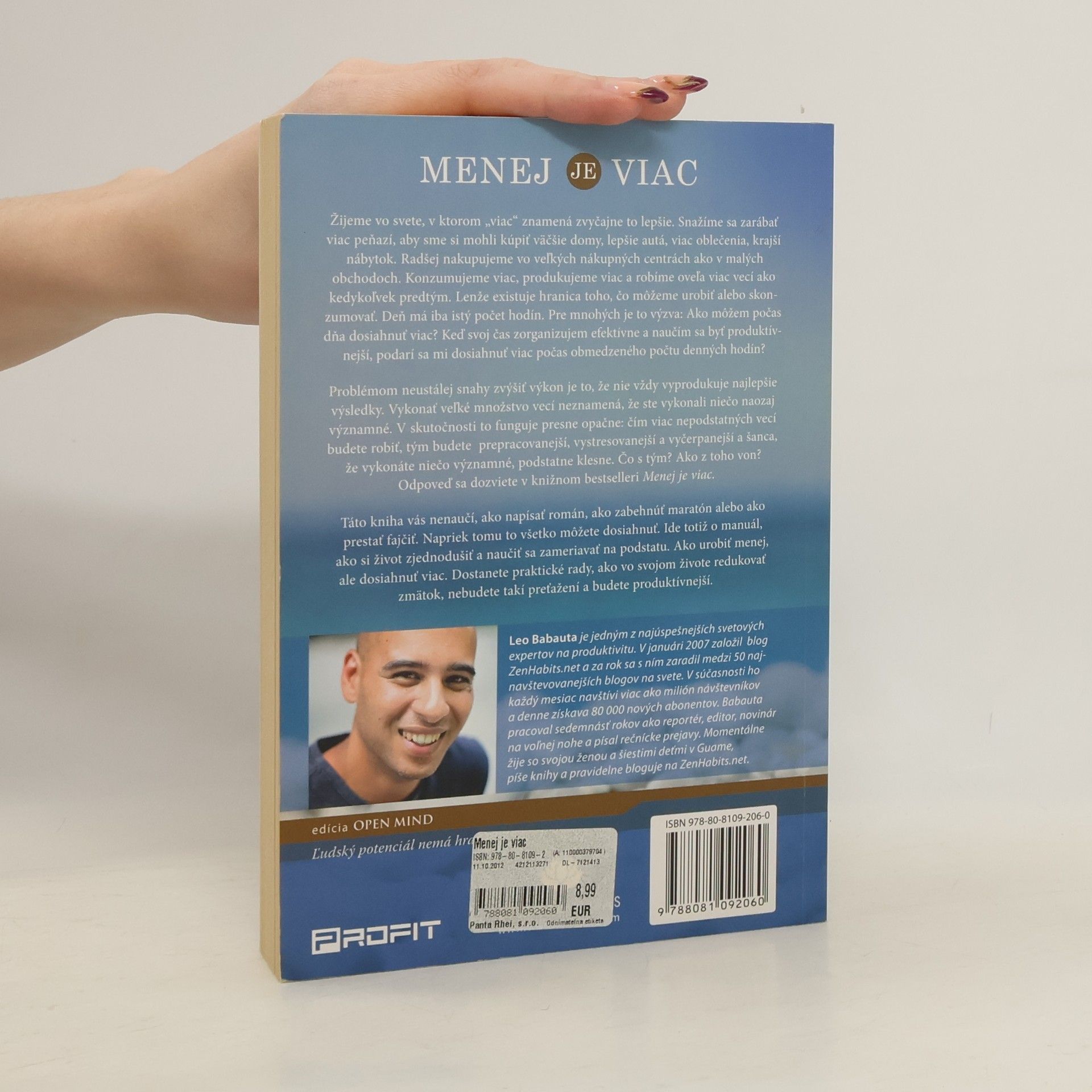 Konzumujeme viac, produkujeme viac a robíme oveľa viac vecí ako kedykoľvek predtým. Lenže existuje hranica toho, čo môžeme urobiť alebo skonzumovať. Deň má iba istý počet hodín. Pre mnohých je to výzva: Ako môžem počas dňa dosiahnuť viac? Keď svoj čas zorganizujem efektívne a naučím sa byť produktívnejší, podarí sa mi dosiahnuť viac v obmedzenom počte denných hodín? Problémom neustálej snahy zvýšiť výkon je to, že nie vždy vyprodukuje najlepšie výsledky. Vykonať veľké množstvo vecí neznamená, že ste vykonali niečo naozaj významné. V skutočnosti to funguje presne opačne: čím viac nepodstatných vecí budete robiť, tým budete prepracovanejší, vystresovanejší a vyčerpanejší a šanca, že vykonáte niečo významné, podstatne klesne. Čo s tým? Ako z toho von? Odpoveď sa dozviete v knižnom bestselleri Menej je viac. Ide o manuál, ako si život zjednodušiť a naučiť sa zameriavať na podstatu.
