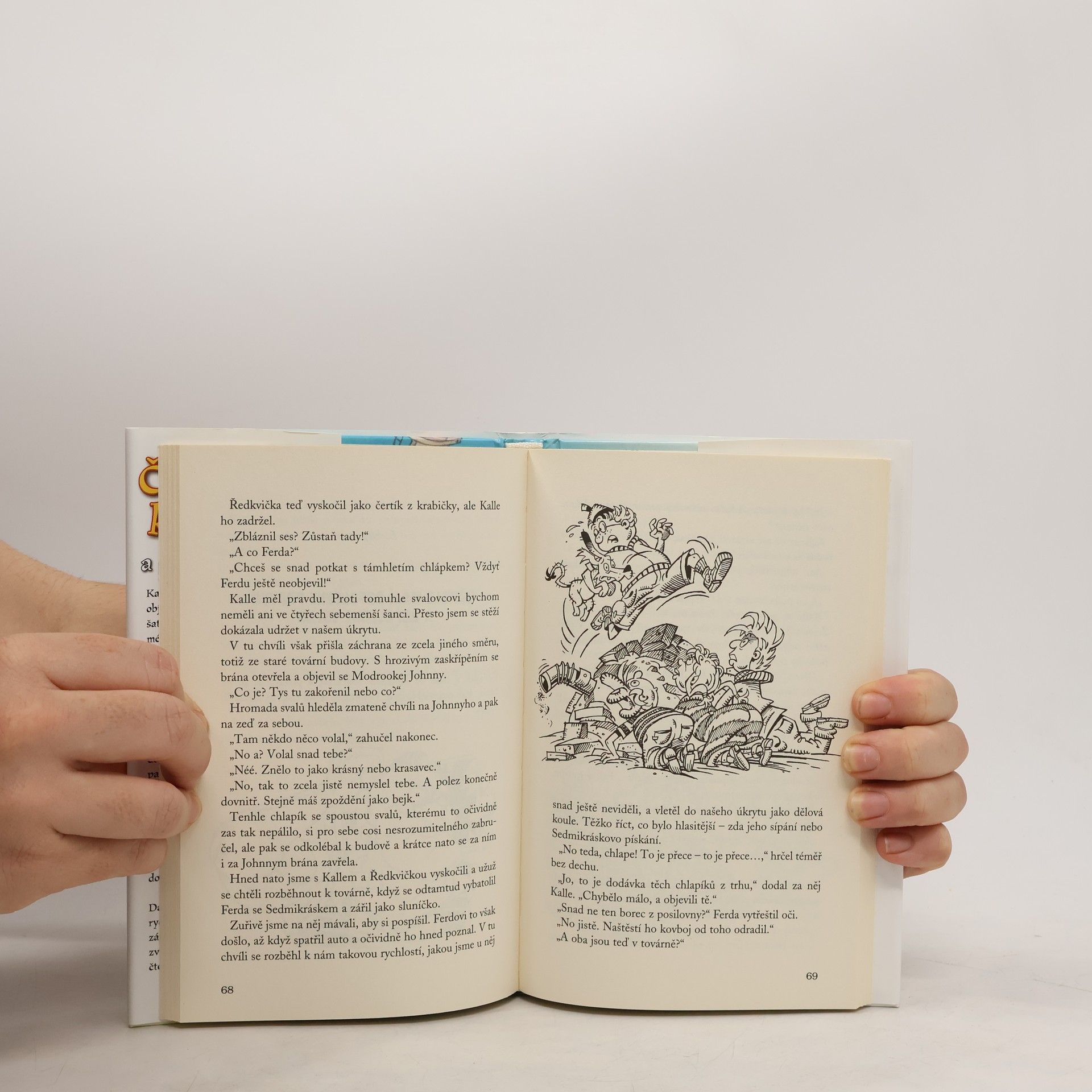 Z pronásledovatelů se stávají pronásledovaní. Kalle, Ferda, Štefka a Ředkvička objeví na trhu stánek se značkovými šaty, které se tam ale prodávají za méně než polovinu obvyklé ceny. Kalle hned zavětří nový případ! A protože pes slavných dětských detektivů Sedmikrásek má konečně začít chodit do psí školy, Kalle tentokrát věří, že jim pes v pátrání doopravdy pomůže. Ale to se hodně přepočítal. Nejen že Sedmikrásek dožene psího cvičitele k zuřivosti, ale pak zcela nečekaně zmizí. A Kallovi a jeho kamarádům jsou náhle v patách prodavači z podezřelého stánku. Z pronásledovatelů se stávají pronásledovaní a čtyři kamarádi zažívají se Sedmikráskem dobrodružství, o kterém se jim doopravdy ani nesnilo. Další román ze slavné série zaujme rychlým spádem, dobrodružnou zápletkou a nečekanými humornými zvraty, které rozesmějí malé i velké čtenáře.