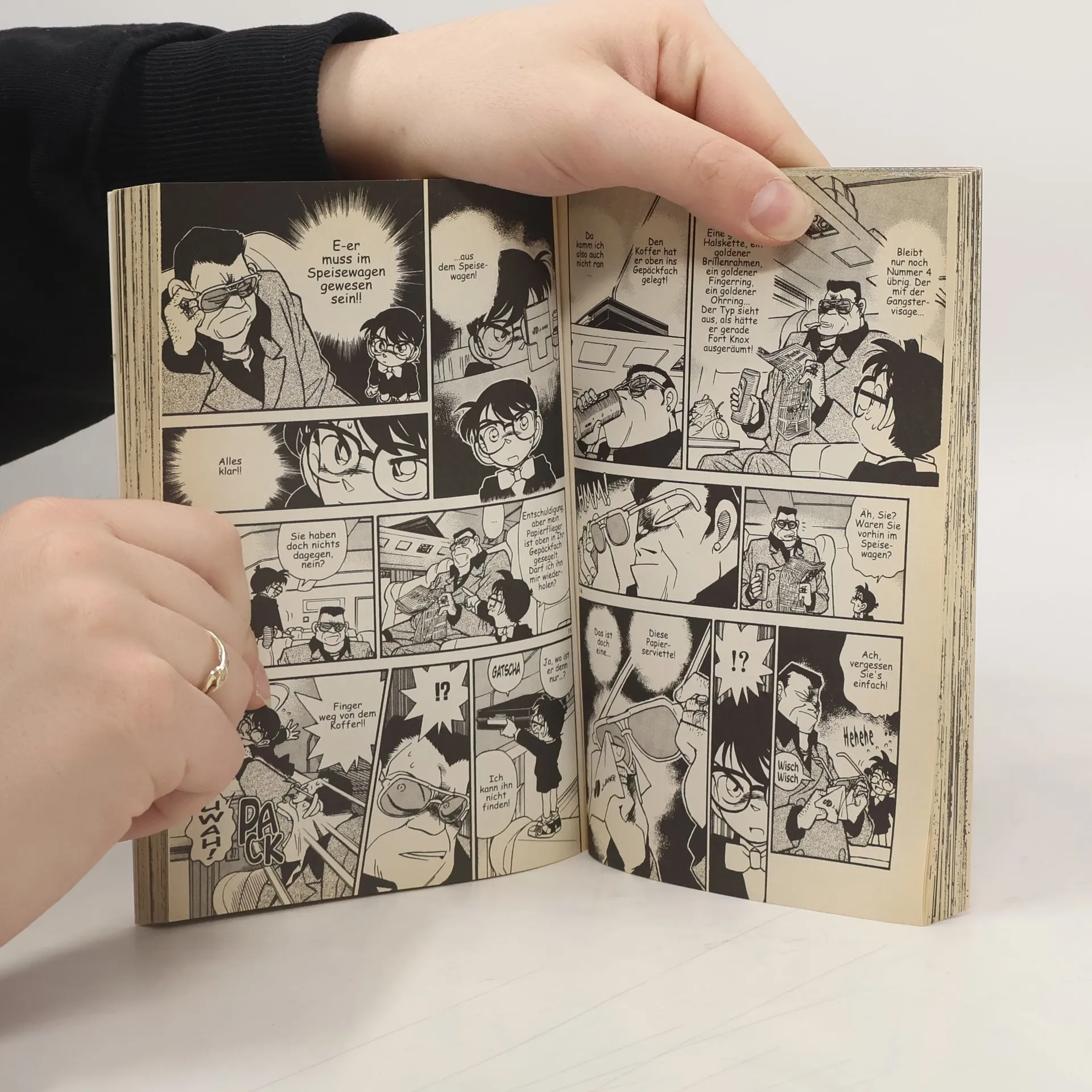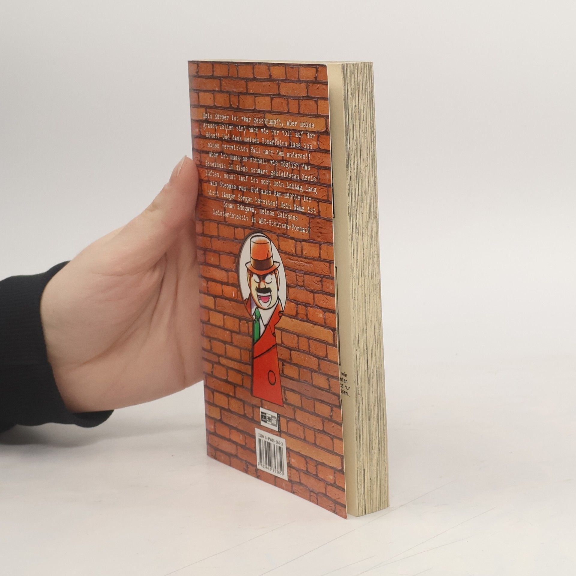 Mein Körper ist zwar geschrumpft, aber meine grauen Zellen sind nach wie vor voll auf der Höhe!! Und dank meinem Scharfsinn löse ich einen verzwickten Fall nach dem anderen!! Aber ich muss so schnell wie möglich das Geheimnis um diese schwarz gekleideten Kerle lüften, sonst lauf ich noch mein Lebtag lang als Steppke rum! Und auch Ran möchte ich nicht länger Sorgen bereiten! Mein Name ist Conan Edogawa, meines Zeichens Meisterdetektiv im ABC-Schützen-Format!