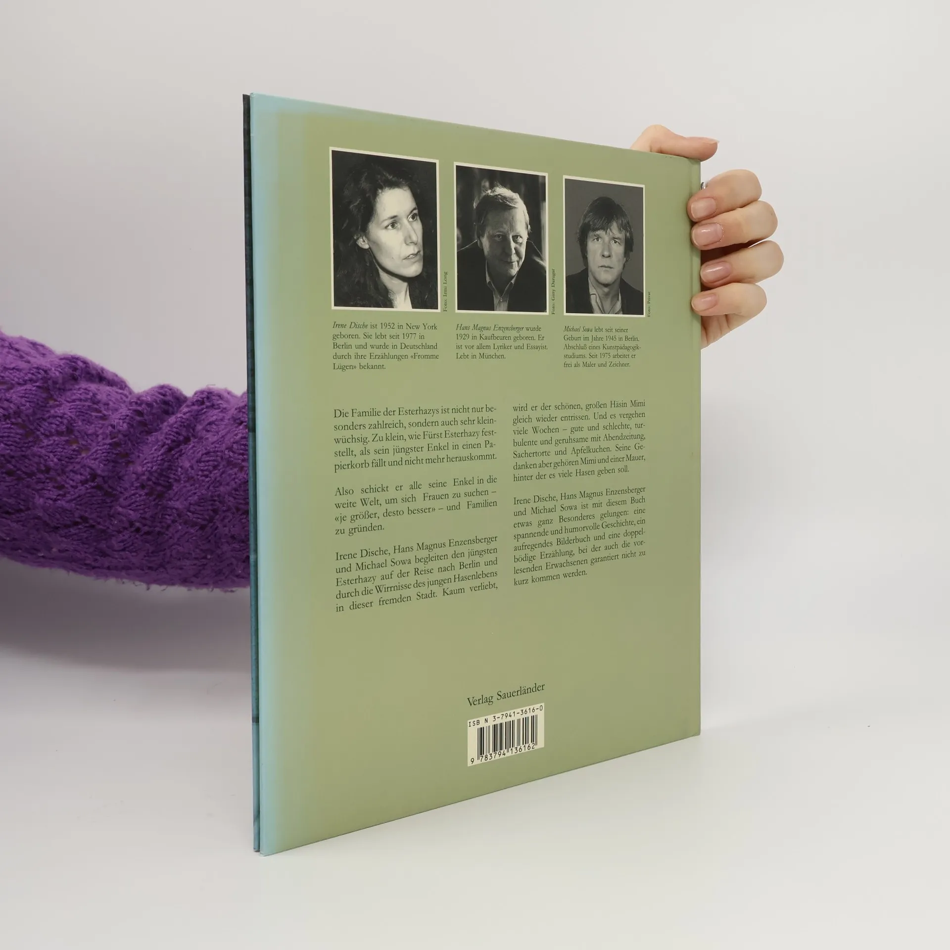 Mit „Esterhazy“ haben Irene Dische und Hans Magnus Enzenzberger einen modernen Klassiker geschaffen. „Esterhazy“ nicht ohne Anspielungen auf Zeitgeschichte, ist aber doch vor allem eine Liebesgeschichte voll Sehnsucht, Mut und Übermut. Und weil Michael Sowa einfach der Künstler ist, um die Großstadtmelancholie eines winzigen Hasen zu malen, ist diese humorvolle Romanze ein Geschenkbuch, das Erwachsene und Kinder gleichermaßen begeistert.
