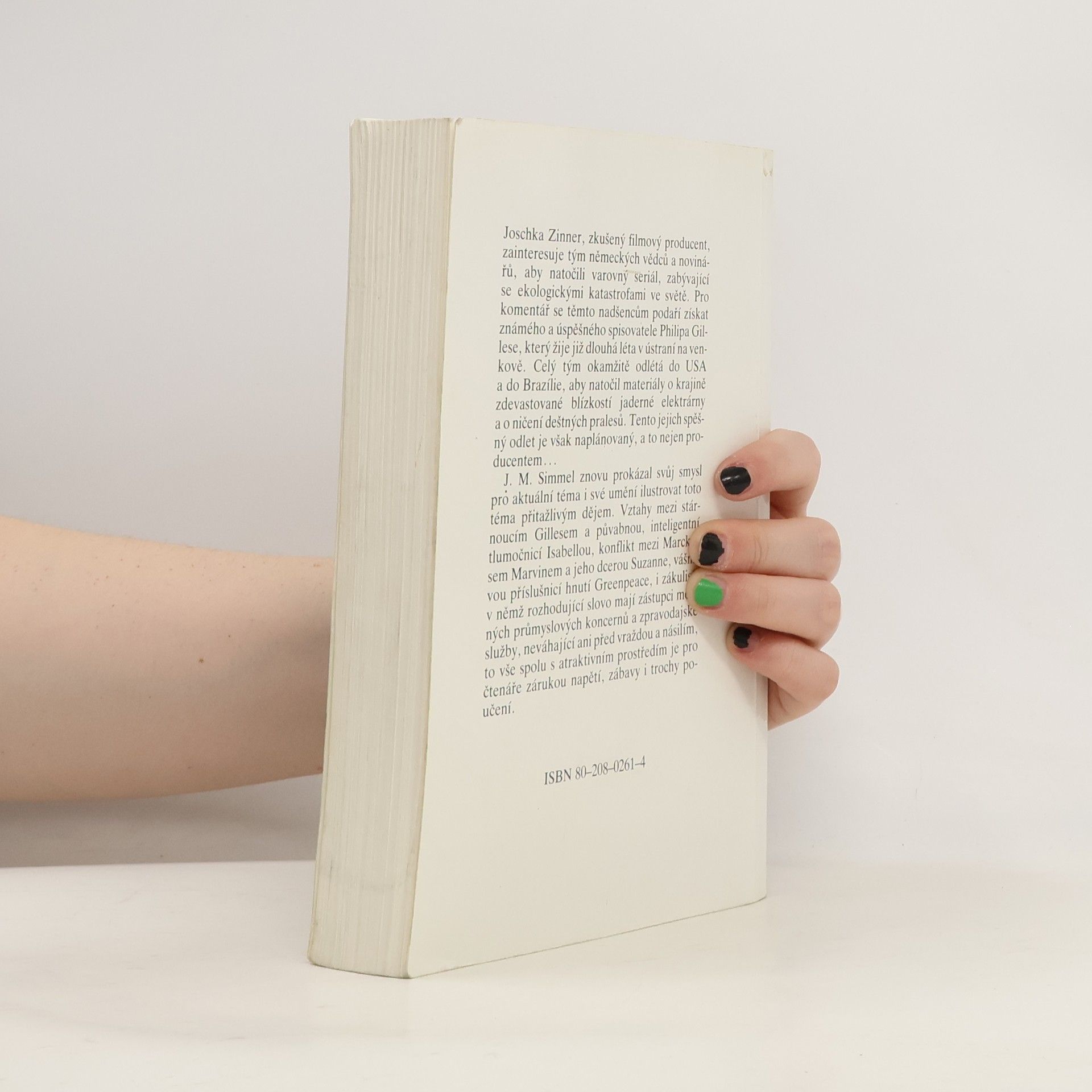 Joschka Zinner, zkušený filmový producent, zainteresuje tým německých vědců a novinářů, aby natočili varovný dokument o světových ekologických katastrofách. Jako komentátora se těmto nadšencům podaří získat slavného a úspěšného spisovatele Philipa Gillese, který žije již dlouhá léta v ústraní na venkově. Celý tým odlétá do USA a Brazílie, aby natočil otřesné snímky o krajině zdevastované blízkostí jaderné elektrárny a o ničení deštných pralesů... Aktuální téma o globálním narušování životního prostředí, jež ve svém důsledku hrozí ekologickou sebevraždou lidstva, autor ilustruje přitažlivým dějem. Vztahy mezi stárnoucím Gillesem a půvabnou tlumočnicí Isabellou, konflikt mezi Markusem Marvinem a jeho dcerou Susanne, zapálenou příslušnicí hnutí Greenpeace, i zákulisí, v němž mají rozhodující slovo zástupci mocných průmyslových koncernů a zpravodajské služby neváhající před násilím ani vraždou, to vše spolu s atraktivním prostředím je pro čtenáře zárukou napětí zábavy i poučení.