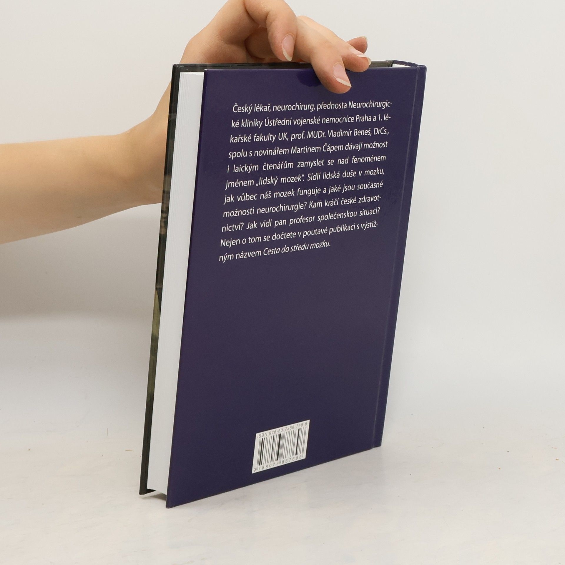 Jméno Plk. prof. MUDr. Vladimíra Beneše, DrSc. není třeba příliš představovat. Český lékař, neurochirurg, přednosta Neurochirurgické kliniky Ústřední vojenské nemocnice Praha a 1. Lékařské fakulty UK je velmi dobře znám po celém světě. Mimo jiné působí také ve funkci předsedy České neurochirurgické společnosti a prezidenta Evropské asociace neurochirurgických společnosti. Od roku 1998 zároveň vede subkatedru neurochirurgie na Institutu postgraduálního vzdělávání ve zdravotnictví (IPVZ). Spolu s novinářem Martinem Čápem dává MUDr. Beneš možnost i laickým čtenářům zamyslet se nad fenoménem jménem „lidský mozek“. Sídlí lidská duše v mozku, jak vůbec náš mozek funguje a jaké jsou současné možnosti neurochirurgie…? Nejen o tom se dočtete v poutavé publikaci s výstižným názvem Cesta do středu mozku.