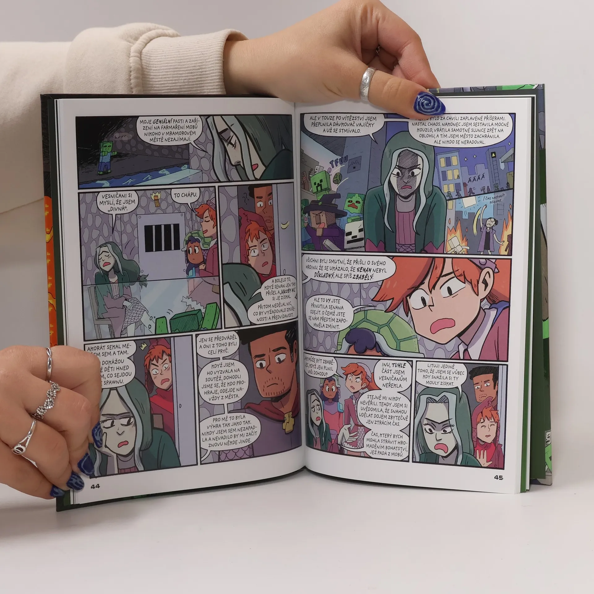 Vstupte do Overworldu s druhým dílem dobrodružného příběhu Chodí wither okolo ze světa nejprodávanější videohry – Minecraftu! Poté, co dvojčata Cahira a Orion zachránila svého učitele z břicha withera, obrátila pozornost k vyřešení záhady kletby své nové kamarádky, která přitahuje nepřátelské příšery. Společně musí vyhledat Senanovu bývalou protivnici, čarodějnici, která snad dokáže Atriinu kletbu vyléčit. Věci ale nejsou vždy takové, jaké se zdají. Čarodějnice má krásný dům s úžasnou kočičí fontánou, ale v podzemí skrývá tajemství: farmu na moby! Dvojčata se seznamují s městským ruchem a spustí řetěz událostí, který povede až k zombie katastrofě. Dokážou zachránit město i bezradné vesničany? Druhý ze tří vzrušujících příběhů ze světa Minecraftu!