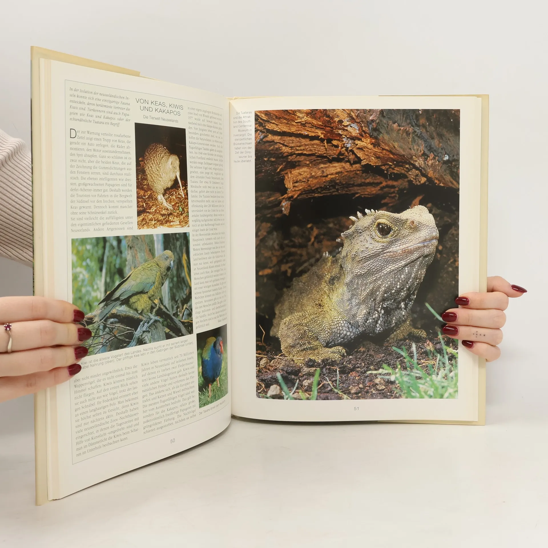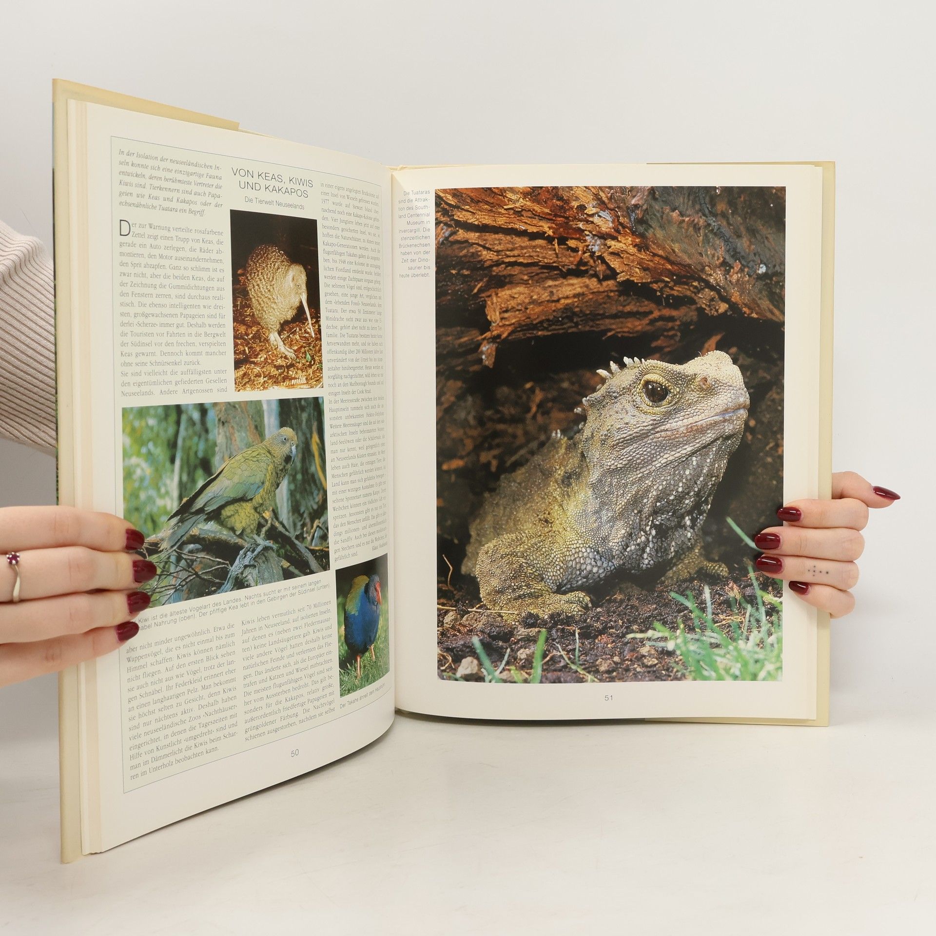 Neuer Zuschnitt - neues Buch! Nach dem großformatigen Neuseeland-Bildband des Verlages (ID 13/92) folgte ein preiswerter Reisebildband (BA 5/95), 'Buchers Fernreise ...' (BA 4/92) ist auch noch lieferbar. Der vorliegende Band ist weitgehend eine Mixtur aus den o.a. Titeln. Der Text wurde aus 'Buchers Fernreise ...' übernommen, angereichert durch Themenseiten, die z.T. auch im Reisebildband zu finden sind. Die sehr guten Fotos stammen überwiegend ebenfalls aus dem Fundus und werden in neuer Anordnung und z.T. im anderen Format gezeigt. Der Reiseteil wurde umgeschrieben und aktualisiert (wobei nun die topographische Entstehung nicht mehr auf 250, sondern nur noch auf 150 Millionen Jahre zurückdatiert wird). Kleineren Büchereien empfohlen, die keinen der o.g. Titel besitzen. (2).