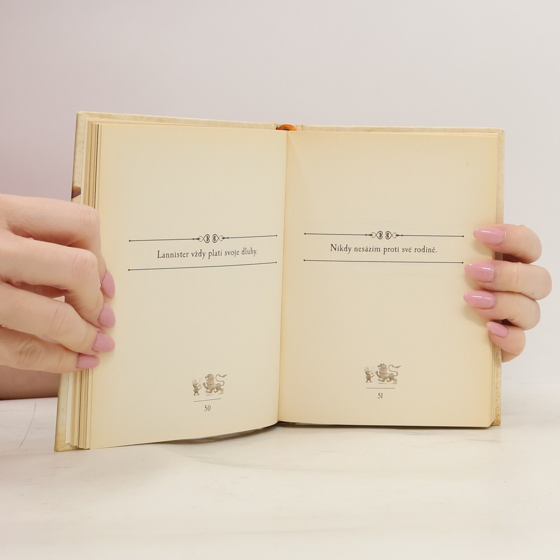 Mudrosloví urozeného pána Tyriona Lannistera jsou dokonalým dárkem pro všechny, kteří podlehli mánii seriálu HBO Hra o trůny. Pochopitelně stejně dobrým dárkem bude i pro fanoušky celé ságy Píseň ledu a ohně G. R. R. Martina, ze které seriál čerpá. Kniha obsahuje přesně to, co slibuje její název – moudra trpaslíka Tyriona z Lannisterů, nejmladšího znetvořeného syna lorda Tywina Lannistera z Casterlyovy skály. Co mu příroda odepřela na vzhledu, vynahradila mu na inteligenci, díky čemuž se z něj stal jeden z nejpopulárnějších hráčů o trůny. Jeho seriálová i knižní postava má po celém světě miliony fanoušků, čehož důkazem je tato sbírka jeho neotřelých myšlenek a názorů.