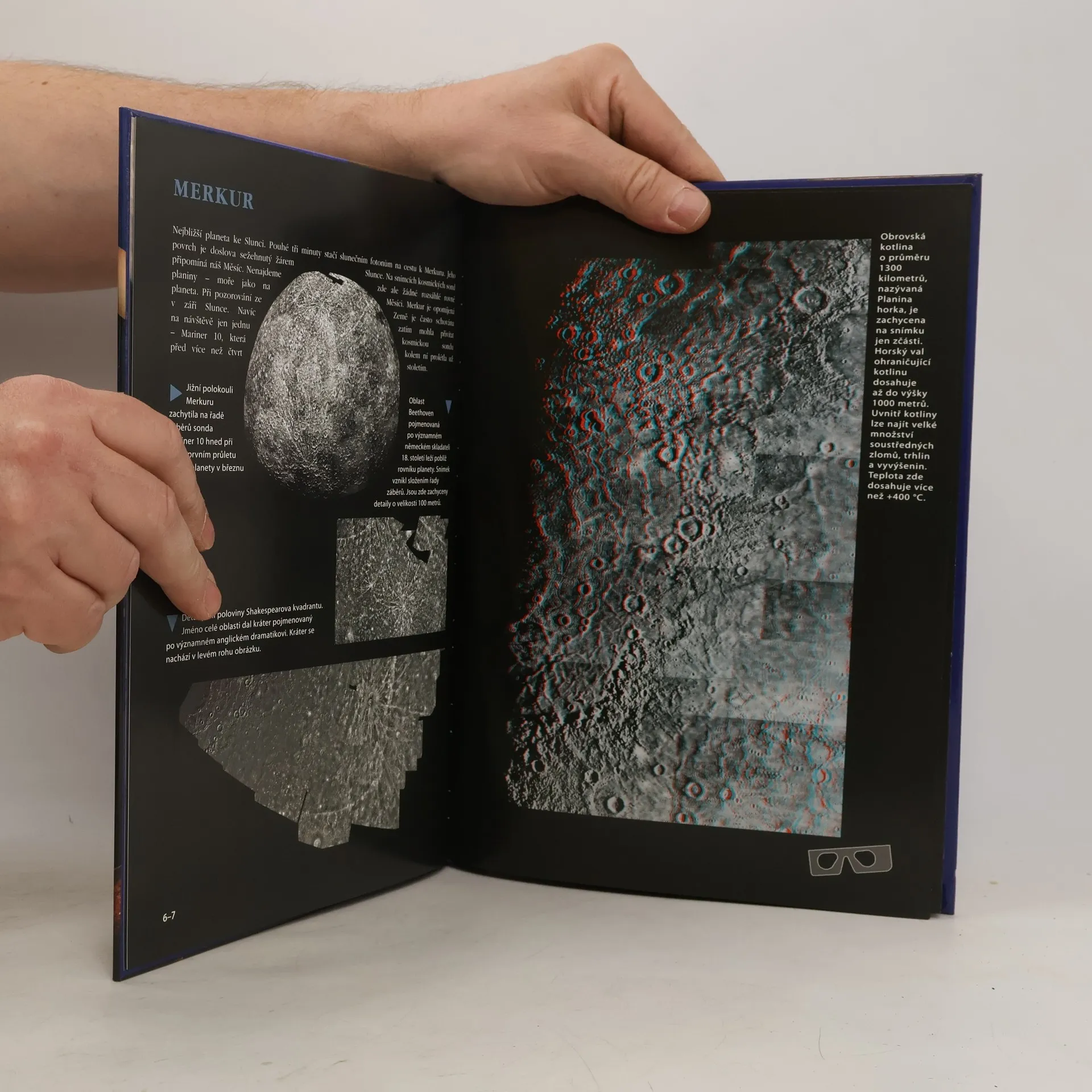 Vesmírné putování začíná Sluncem a pokračuje návštěvou Merkuru, Venuše, Země i jejího věrného souputníka Měsíce. Dále se podíváme na Mars a planetky nacházející se mezi drahou Marsu a Jupiteru, navštívíme i samotný Jupiter a jeho obří družice, nezapomeneme ani na další planety: Saturn, Uran, Neptun a Pluto. Knížka je výjimečná především tím, že vesmírné objekty můžeme vidět za pomoci 3D brýlí trojrozměrně, jako bychom se ocitli v jejich bezprostřední blízkosti.