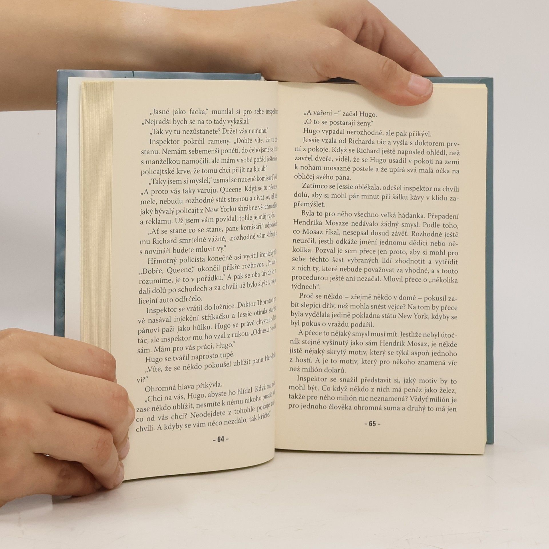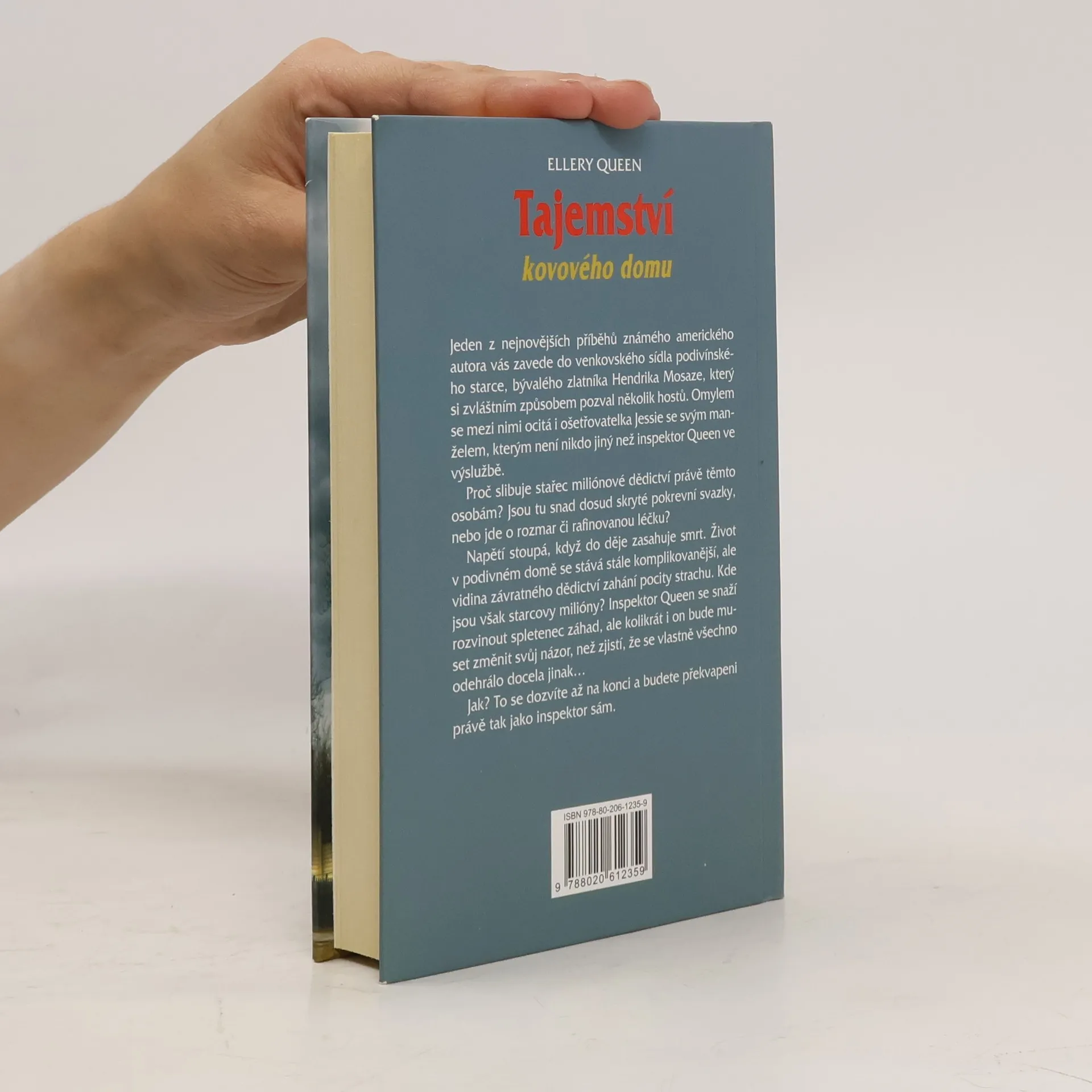 eden z nejnovějších příběhů známého amerického autora vás zavede do venkovského sídla podivínského starce, bývalého zlatníka Hendrika Mosaze, který si zvláštním způsobem pozval několik hostů. Omylem se mezi nimi ocitá i ošetřovatelka Jessie se svým manželem, kterým není nikdo jiný než inspektor Queen ve výslužbě. Proč slibuje stařec miliónové dědictví právě těmto osobám? Jsou tu snad dosud skryté pokrevní svazky, nebo jde o rozmar, či rafinovanou léčku? Napětí stoupá, když do děje zasahuje smrt. Život v podivném domě se stává stále komplikovanější, ale vidina závratného dědictví zahání pocity strachu. Kde jsou však starcovy milióny? Inspektor Queen se snaží rozvinout spletenec záhad, ale kolikrát i on bude muset změnit svůj názor, než zjistí, že se vlastně všechno odehrálo docela jinak… Jak? To se dozvíte až na konci a budete překvapeni právě tak jako inspektor sám.
