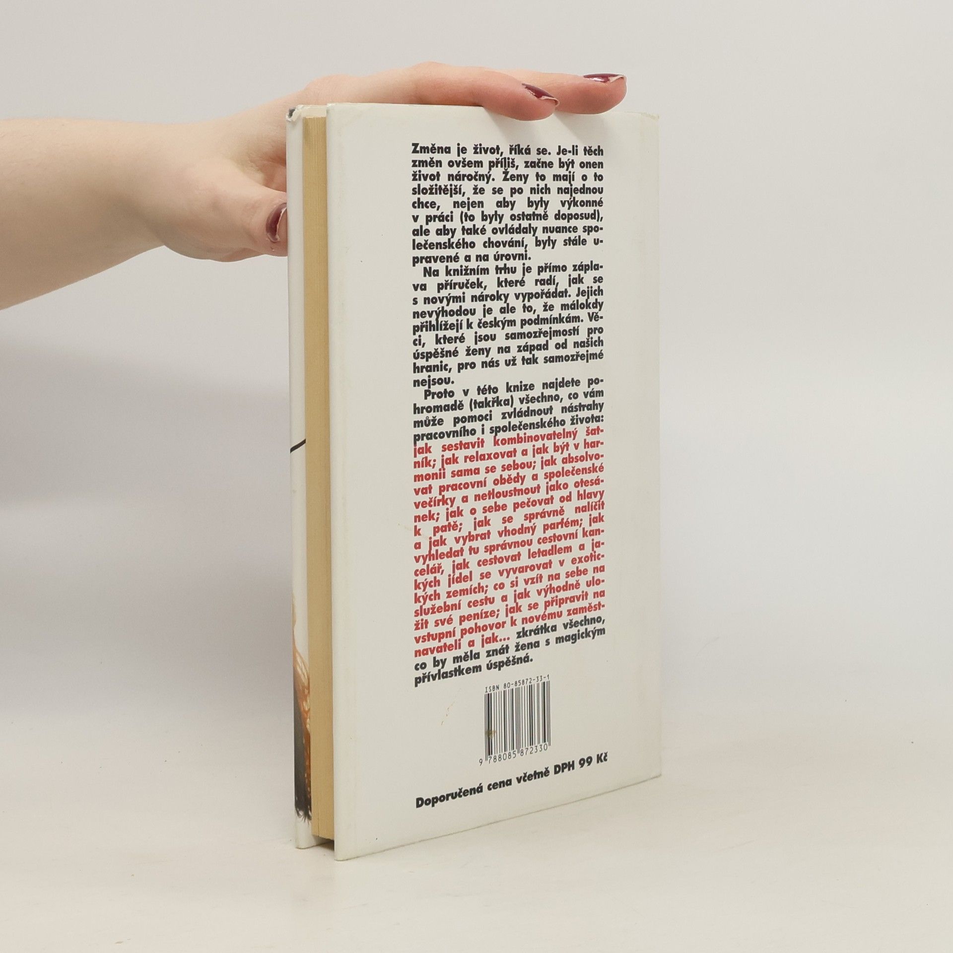 Kniha pro ženy, které jsou nebo chtějí být úspěšné ve specifických českých podmínkách. Obsahuje užitečné rady, jak zvládnout nástrahy pracovního i společenského života a vůbec všechno, co by měla znát žena s magickým přívlastkem úspěšná.