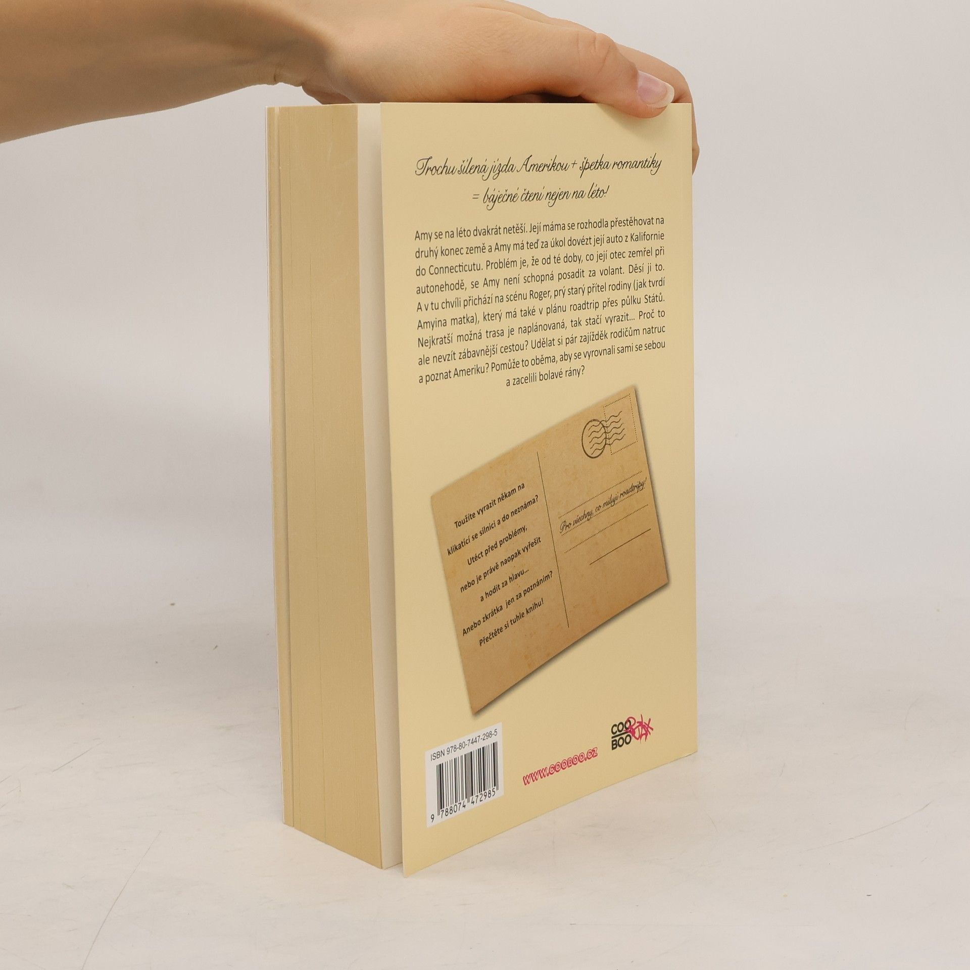 Amy se na léto dvakrát netěší. Její máma se rozhodla přestěhovat na druhý konec země a Amy má teď za úkol dovézt její auto z Kalifornie do Connecticutu. Problém je, že od té doby, co její otec zemřel při autonehodě, se Amy není schopná posadit za volant. Děsí ji to. A v tu chvíli přichází na scénu Roger, prý starý přítel rodiny (jak tvrdí Amyina matka), který má také v plánu road trip přes půlku Států. Nejkratší možná trasa je naplánovaná, tak stačí vyrazit… Proč to ale nevzít zábavnější cestou? Udělat si pár zajížděk rodičům natruc a poznat Ameriku? Pomůže to oběma, aby se vyrovnali sami se sebou a zacelili bolavé rány? Trochu šílená jízda Amerikou + špetka romantiky = báječné čtení nejen na léto! Navíc s přidanou hodnotou spousty obrazového materiálu a playlistů připravených přímo pro vaše uši, aby se vám lépe četlo!