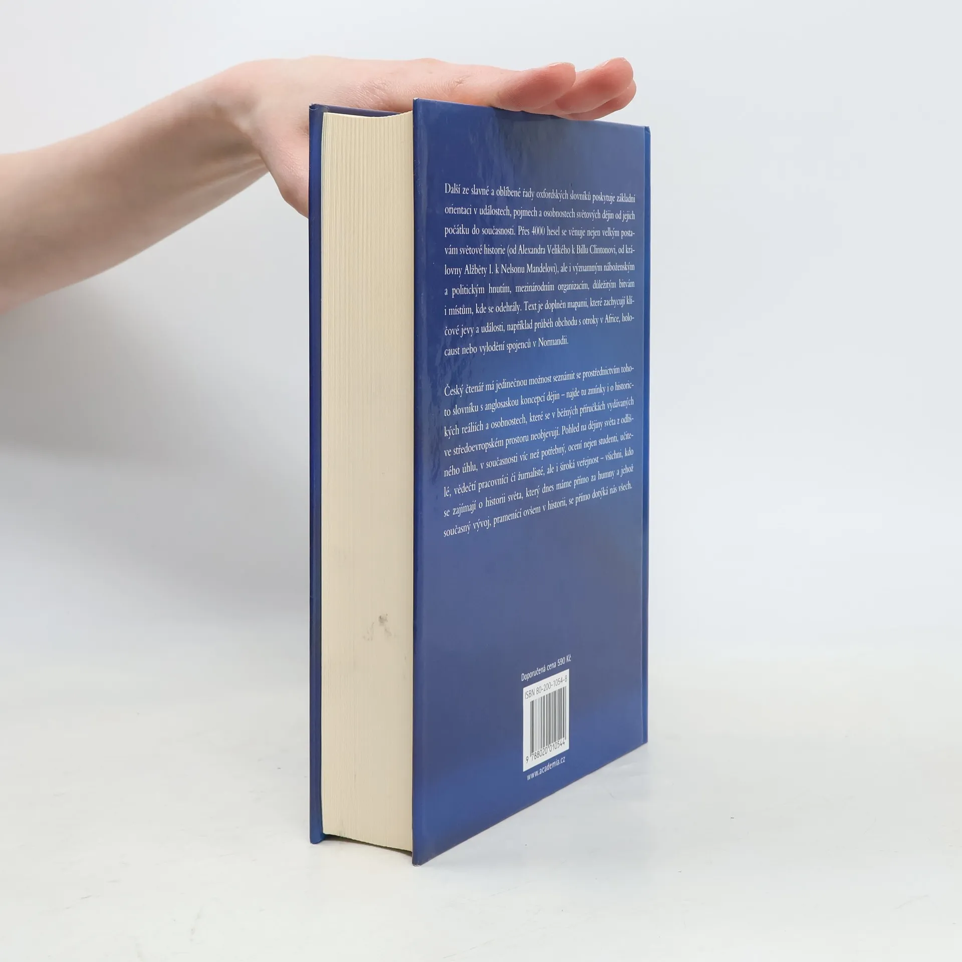 Další ze slavné a oblíbené řady oxfordských slovníků poskytuje základní orientaci v událostech, pojmech a osobnostech světových dějin od jejich počátku do současnosti. Přes 4000 hesel se věnuje nejen velkým postavám světové historie (od Alexandra Velikého k Billu Clintonovi, od královny Alžběty I. k Nelsonu Mandelovi), ale i významným náboženským a politickým hnutím, mezinárodním organizacím, důležitým bitvám i místům, kde se odehrály. Text je doplněn mapami, které zachycují klíčové jevy a události, například průběh obchodu s otroky v Africe, holocaust nebo vylodění spojenců v Normandii. Český čtenář má jedinečnou možnost seznámit se prostřednictvím tohoto slovníku s anglosaskou koncepcí dějin - najde tu zmínky i o historických reáliích a osobnostech, které se v běžných příručkách vydávaných ve středoevropském prostoru neobjevují. Pohled na dějiny světa z odlišného úhlu, v současnosti víc než potřebný, ocení nejen studenti, učitelé, vědečtí pracovníci či žurnalisté, ale i široká veřejnost.