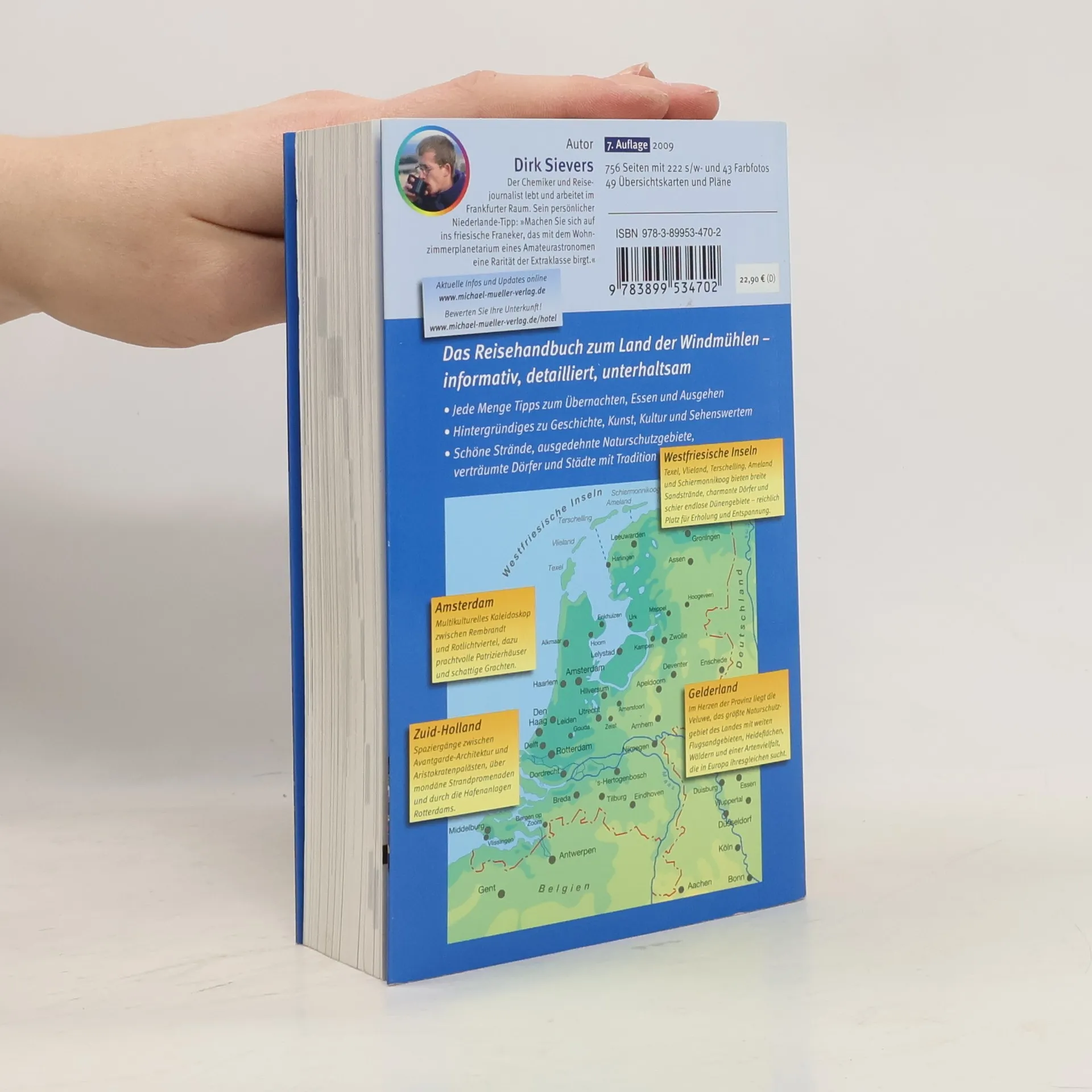 Was­ser ist das do­mi­nie­ren­de Ele­ment: Meer, Flüs­se und un­zäh­li­ge Ka­nä­le prä­gen den klei­nen west­li­chen Nach­barn Deutsch­lands und ent­spre­chend groß ist das An­ge­bot für die vie­len Bade- und Was­ser­sport­freun­de, die Jahr für Jahr hier ihren Ur­laub ver­brin­gen. Ins­be­son­de­re für Fa­mi­li­en mit Kin­dern prä­sen­tiert sich das Land als wah­res Fe­ri­en­pa­ra­dies und als echte Al­ter­na­ti­ve zum Trip in süd­li­che Ge­fil­de. Doch auch wer an­de­re In­ter­es­sen hat, kann eine Menge ent­de­cken: Städ­te mit pracht­vol­len Pa­tri­zi­er­häu­sern, his­to­ri­schen Märk­ten und oft be­deu­ten­den Mu­se­en, aber auch tru­be­li­ge Ge­schäf­tig­keit in mul­ti­kul­tu­rel­len Boom­towns wie Ams­ter­dam und Rot­ter­dam.Der jetzt in ach­ter Auf­la­ge vor­lie­gen­de Rei­se­füh­rer wid­met sich allen zwölf Pro­vin­zen des Lan­des in einem ei­ge­nen Ka­pi­tel und bie­tet dabei den ge­wohn­ten Stan­dard des Ver­la­ges: viele rei­se­prak­ti­sche In­for­ma­tio­nen in­klu­si­ve Über­nach­tungs- und Re­stau­rant­tipps, in­ter­es­san­te Hin­ter­grund­ge­schich­ten und na­tür­lich de­tail­lier­te Orts- und Land­schafts­be­schrei­bun­gen.