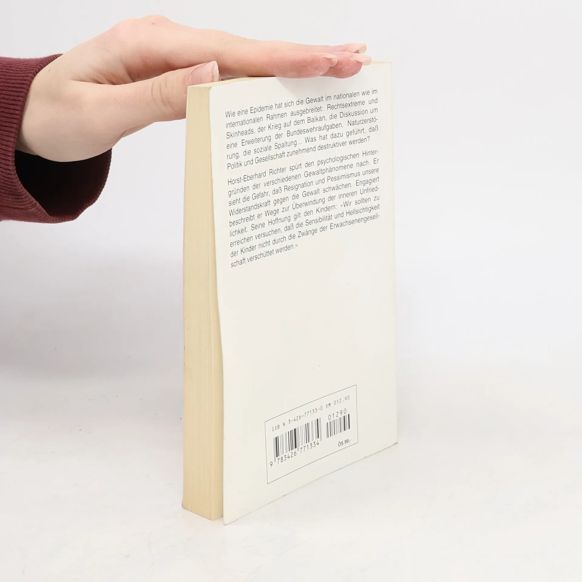 Der Psychoanalytiker analysiert die psychologischen Hintergründe von Gewaltphanomenen, wie die Ausbeutung der Drittweltländer, Naturzerstörung, Kriege und Rechtsradikalismus, und beschreibt die Gefahren der Verdrängung und Resignation. Besondere Hoffnung setzt er auf die noch intakte Sensibilität der Kinder. (Quelle: Vontobel J., Und bist du nicht willig ... [VIII C 5061]).