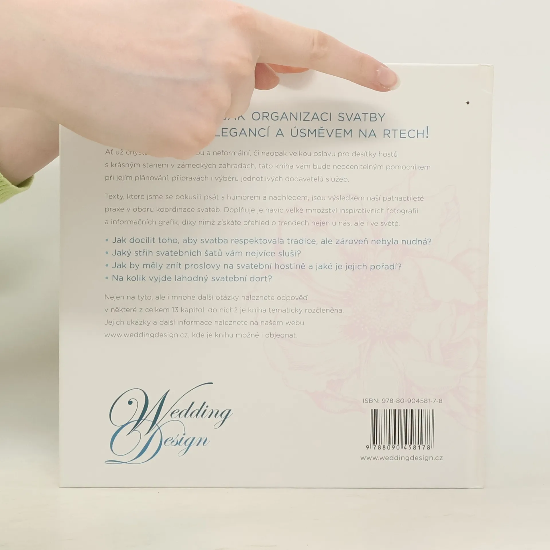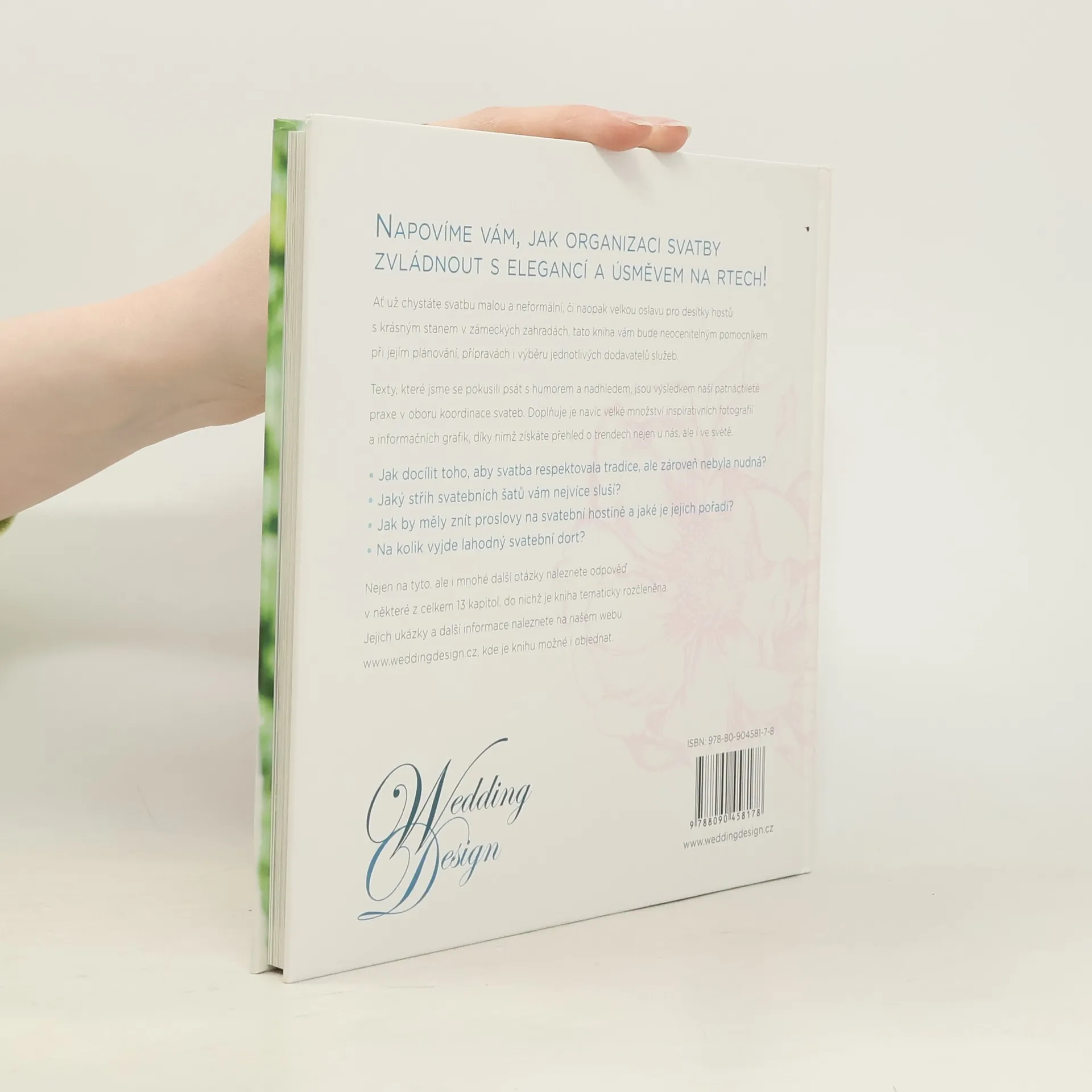 Napovíme vám, jak organizaci svatby zvládnout s elegancí a úsměvem na rtech! Ať už chystáte svatbu malou a neformální, či naopak velkou oslavu pro desítky hostů s krásným stanem v zámeckých zahradách, tato kniha vám bude neocenitelným pomocníkem při jejím plánování, přípravách i výběru jednotlivých dodavatelů služeb. Texty, které jsme se pokusili psát s humorem a nadhledem, jsou výsledkem naší patnáctileté praxe v oboru koordinace svateb. Doplňuje je navíc velké množství inspiračních fotografií a informačních grafik, díky nimž získáte přehled o trendech u nás, ale i ve světě.