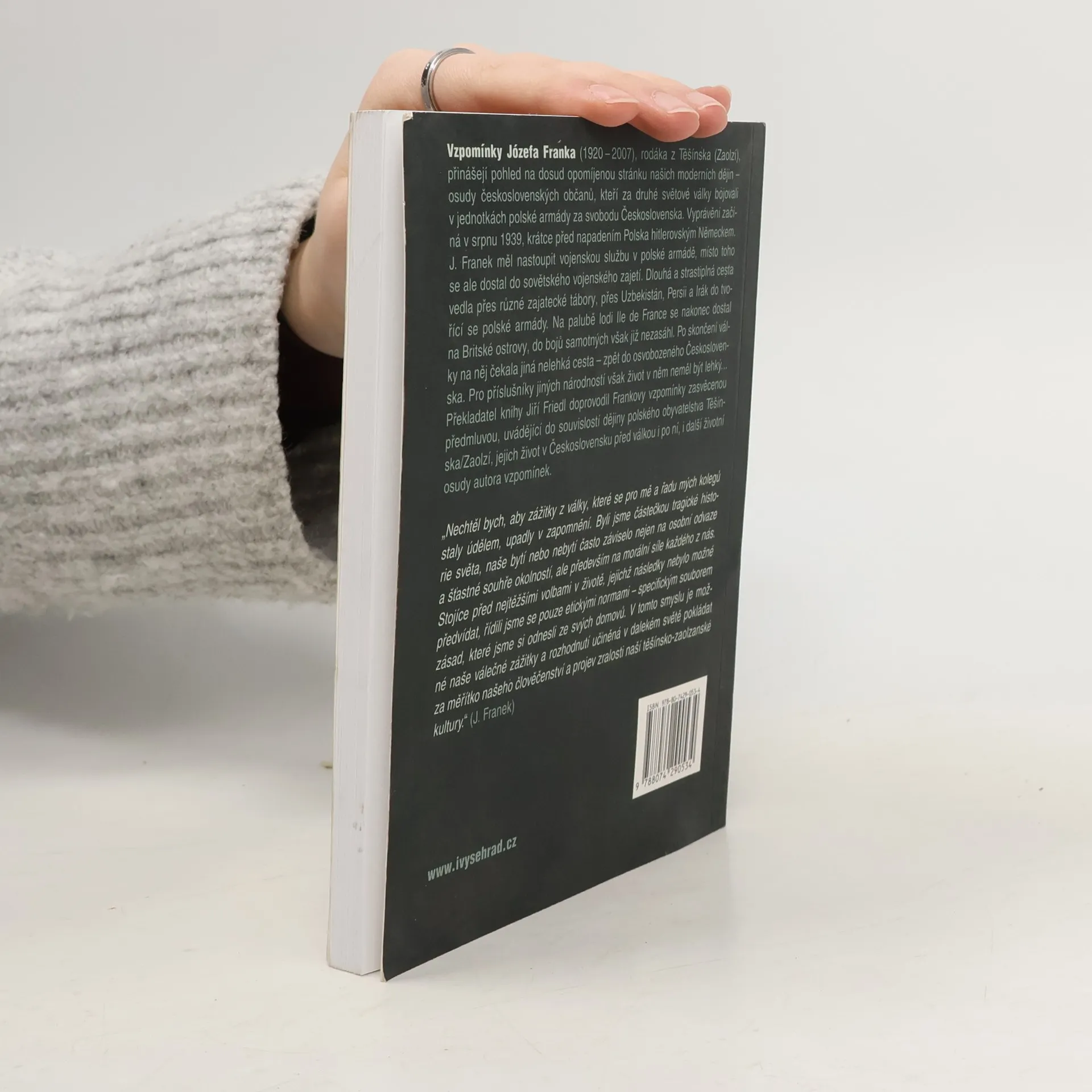 Vzpomínky rodáka z Těšínska Józefa Franka (1920-1997) přibližují dosud málo známou stránku našich moderních dějin osudy příslušníků polské menšiny na území Československa. Odchod do polské armády v srpnu 1939, zajetí v důsledku rusko-německého paktu, obtížné podmínky v internačních táborech na území SSSR, dlouhá cesta přes Střední Východ a výcvik pro boj v polské zahraniční armádě to vše popisuje J. Franek s humorem a dobrými pozorovatelskými schopnostmi. Do samotných bojových operací se sice již nestihl zapojit, konec války pro něj znamenal obtíže jiného druhu chladné uvítání ze strany československých úřadů a poznání, že život v osvobozené vlasti nebude pro příslušníky menšin nijak jednoduchý. Józef Franek zůstal aktivní v podpoře kultury a vzdělanosti polské menšiny na území Československa a později České republiky. I tyto aspekty jeho života připomíná úvodní studie historika a překladatele pamětí Jiřího Friedla, která uvádí do zajímavé, komplikované a nelehké historie regionu Těšínska/Zaolzí a jeho obyvatel.