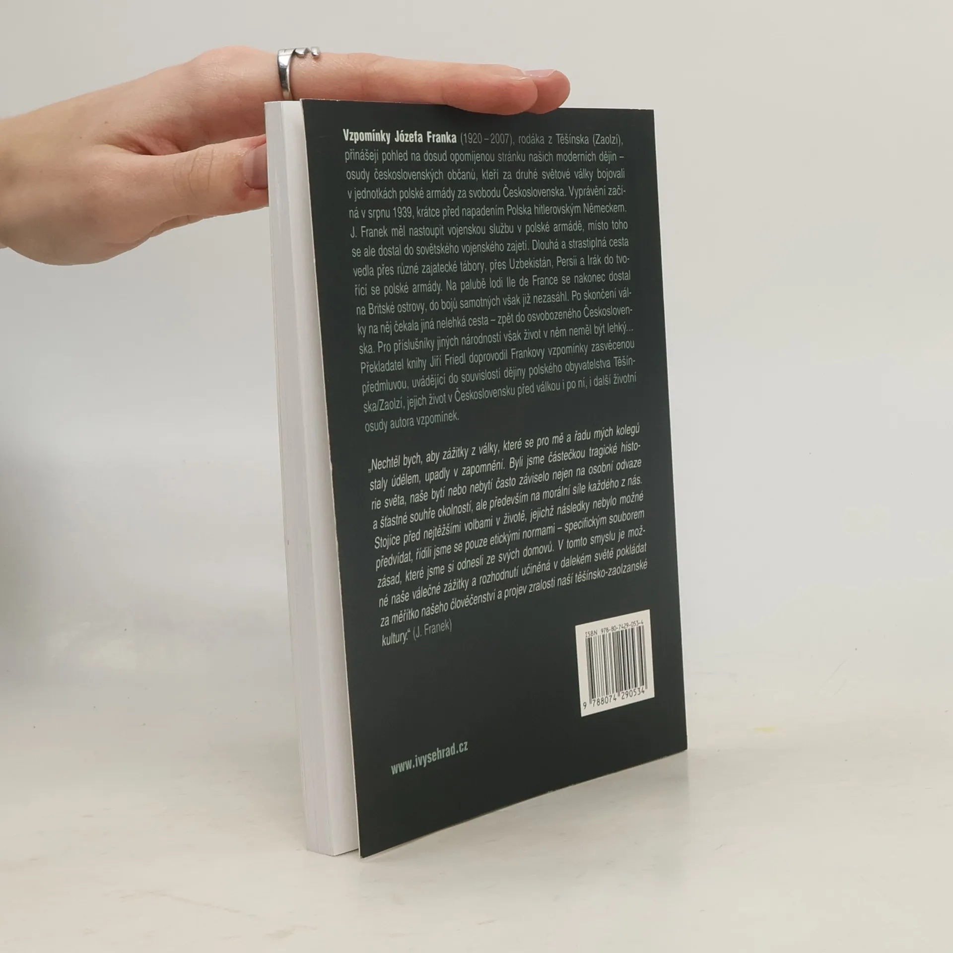 Vzpomínky rodáka z Těšínska Józefa Franka (1920-1997) přibližují dosud málo známou stránku našich moderních dějin osudy příslušníků polské menšiny na území Československa. Odchod do polské armády v srpnu 1939, zajetí v důsledku rusko-německého paktu, obtížné podmínky v internačních táborech na území SSSR, dlouhá cesta přes Střední Východ a výcvik pro boj v polské zahraniční armádě to vše popisuje J. Franek s humorem a dobrými pozorovatelskými schopnostmi. Do samotných bojových operací se sice již nestihl zapojit, konec války pro něj znamenal obtíže jiného druhu chladné uvítání ze strany československých úřadů a poznání, že život v osvobozené vlasti nebude pro příslušníky menšin nijak jednoduchý. Józef Franek zůstal aktivní v podpoře kultury a vzdělanosti polské menšiny na území Československa a později České republiky. I tyto aspekty jeho života připomíná úvodní studie historika a překladatele pamětí Jiřího Friedla, která uvádí do zajímavé, komplikované a nelehké historie regionu Těšínska/Zaolzí a jeho obyvatel.