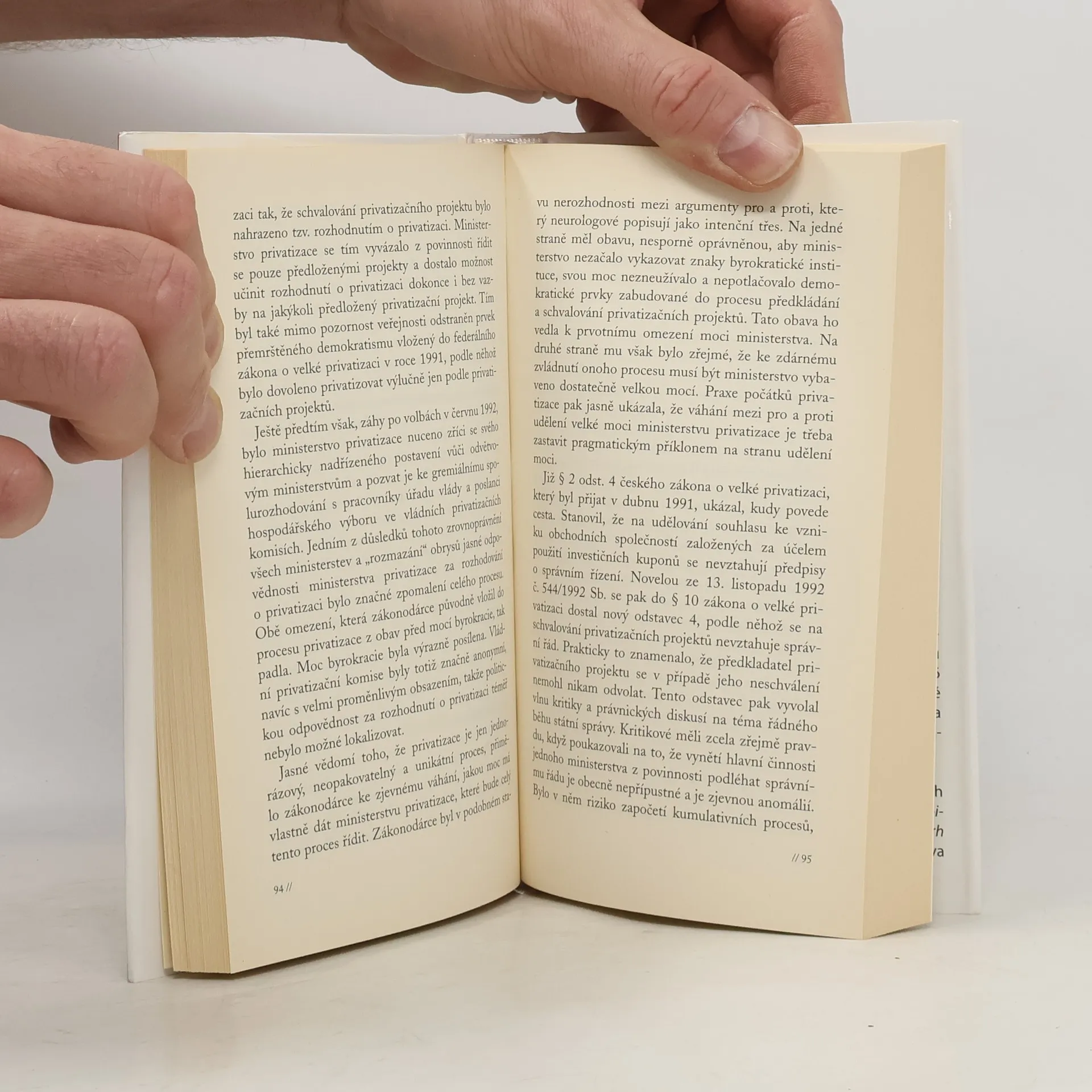 Kniha Tomáše Ježka podrobně mapuje celý proces české privatizace, jak probíhala především v devadesátých letech. Autor ji chápe a pojednává jako základ transformace tzv. socialistické společnosti na společnost svobodných lidí, která spočívá v historicky ojedinělé operaci převádění obrovského státního majetku na soukromé subjekty za účelem vytváření svobodného trhu. Autor provází čtenáře vtipným a srozumitelným způsobem jednotlivými kroky tohoto procesu - od vyjasňování ideových východisek a bojů o smysl, základní cíle a metody privatizace přes konkrétní průběh tzv. malé privatizace, velké privatizace, a zejména pak privatizace kuponové až k úloze jednotlivých institucí a osob. Tomáš Ježek je průvodcem vskutku zasvěceným, neboť podává svědectví takříkajíc z první ruky. Nejenže se za starého režimu de facto jako ekonom teoreticky připravoval na danou problematiku - mj. pro samizdat přeložil práce F. A. von Hayeka -, ale po převratu se mu dostalo možnosti uskutečňovat své teoretické představy v praxi, ať už jako ministr privatizace, předseda Fondu národního majetku, předseda rozpočtového výboru sněmovny či burzovní komory.
