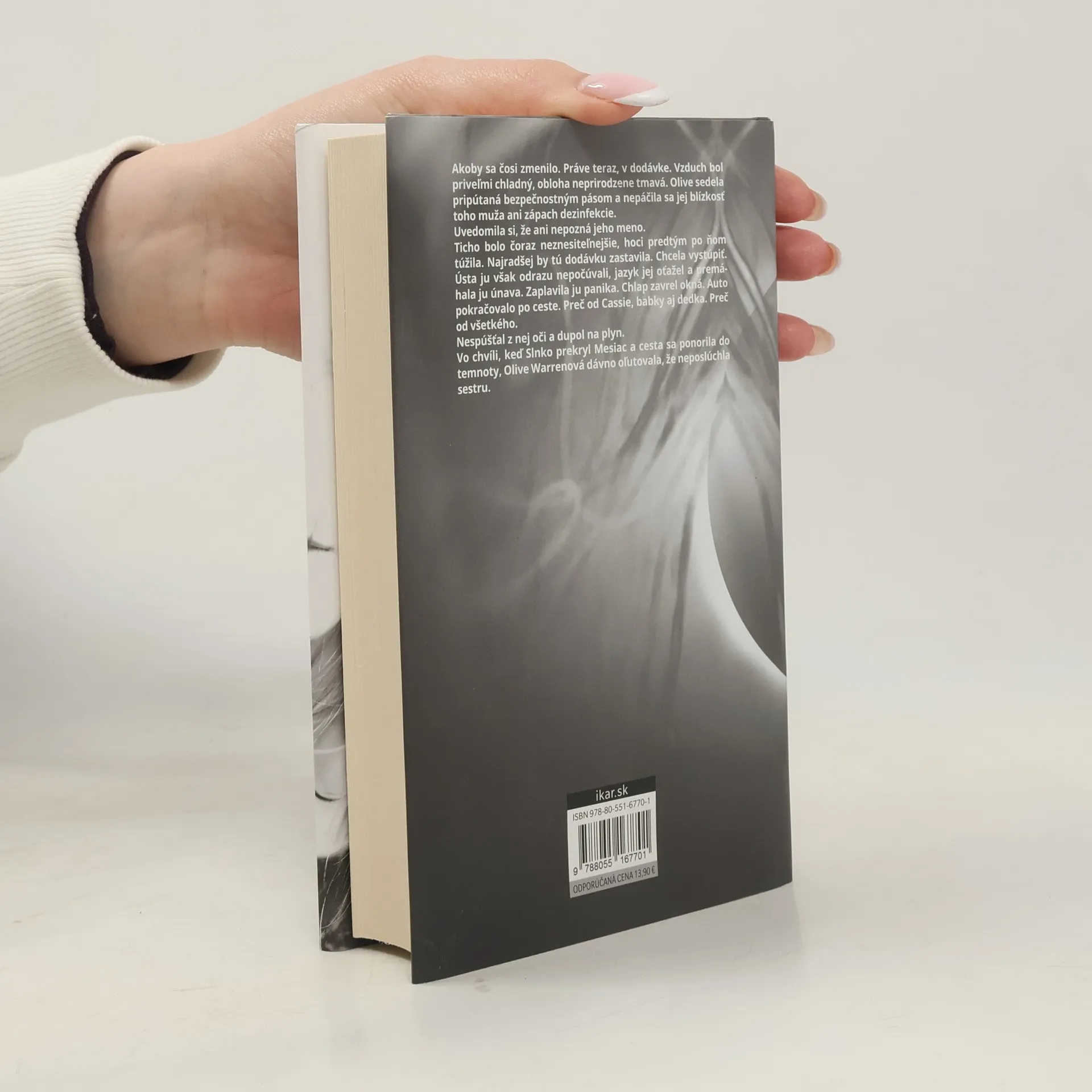 Psychologický triler o tom, akého zla je človek schopný. Počas zatmenia Slnka unesú v mestečku Bishop’s Green dievčatko, na ktoré mala dohliadať staršia sestra Cassie. Nik ho viac nevidel. Po rokoch Cassie opúšťa Londýn, vzdáva sa sľubne rozbehnutej novinárskej kariéry a vracia sa do mestečka postarať sa o chorú babku. Krátko nato zmizne v Bishop’s Green ďalšie dievča presne v sestrinom veku. Cassie sa nevie zbaviť pocitu, že napriek šestnásťročnému rozpätiu únosy súvisia. V hlave jej vŕta zvláštne načasovanie ? k obom incidentom došlo v období zatmenia Slnka. Náhoda? Zámer? Cassie oživuje bolestné spomienky, aby odhalila spojitosť medzi prípadmi. Bishop’s Green je malé mesto, všetci sa poznajú. Kto by bol schopný takého činu?