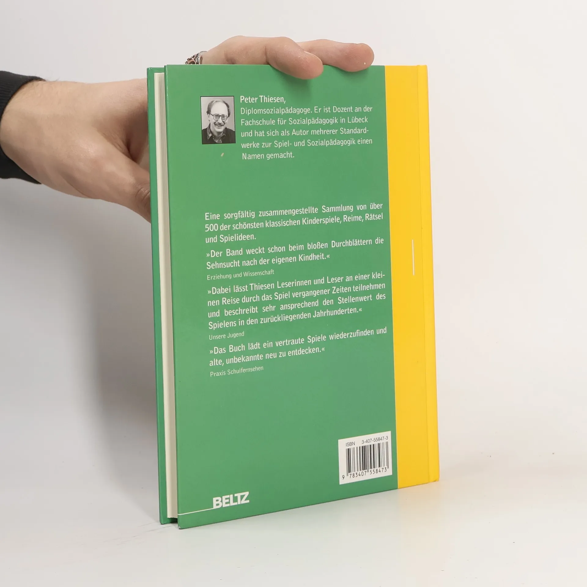 Eine sorgfältig zusammengestellte Sammlung von über 500 der schönsten klassischen Kinderspiele, Reime, Rätsel und Spielideen. Der Band weckt schon beim bloßen Durchblättern die Sehnsucht nach der eigenen Kindheit. Erziehung und Wissenschaft Dabei lässt Thiesen Leserinnen und Leser an einer kleinen Reise durch das Spiel vergangener Zeiten teilnehmen und beschreibt sehr ansprechend den Stellenwert des Spielens in den zurückliegenden Jahrhunderten. Unsere Jugend
