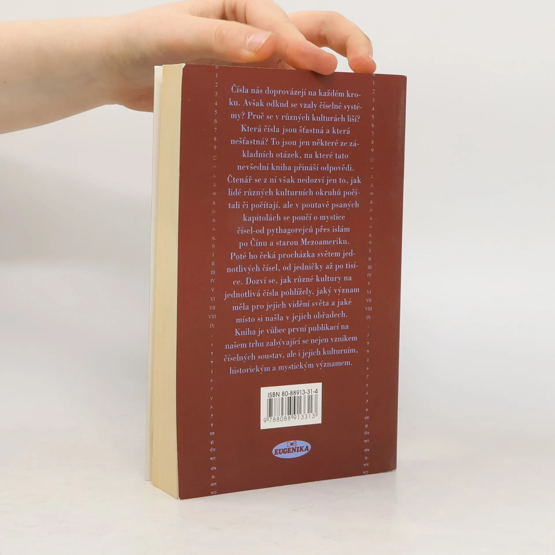 Podtitul: Mystika a magie čísel v různých kulturách. První dílo u nás, které odpovídá na to, odkud se vzaly číselné systémy, proč se liší v různých kulturách, která čísla jsou šťastná a která nešťastná. Dále vás poučí o mystice čísel v lidské historii, odhalí svět jednotlivých číslic s jejich významy a mnoho jiných zajímavostí.