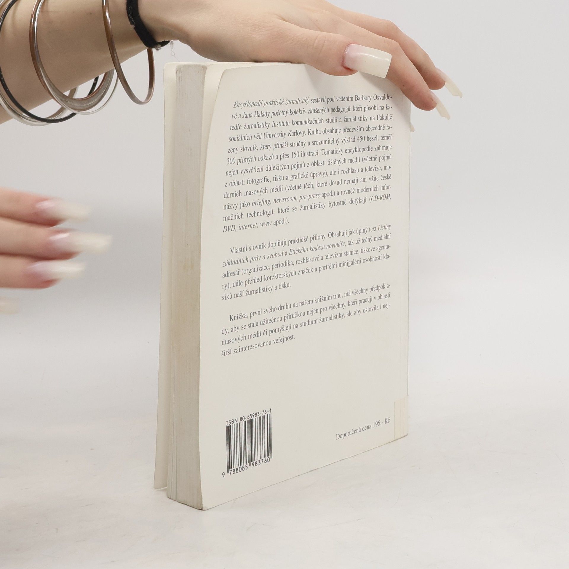 Encyklopedii praktické žurnalistiky sestavil pod vedením Barbory Osvaldové a Jana Halady početný kolektiv zkušených pedagogů, kteří působí na katedře žurnalistiky Institutu komunikačních studií a žurnalistiky na Fakultě sociálních věd Univerzity Karlovy. Kniha obsahuje především abecedně řazený slovník, který přináší stručný a srozumitelný výklad 450 hesel, téměř 300 přímých odkazů a přes 150 ilustrací. Obsahují jak úplný text Listiny základních práv a svobod a Etického kodexu novináře, tak užitečný mediální adresář (organizace, periodika, rozhlasové a televizní staice, tiskové agentury), dále přehled korektorských značek a portrétní minigalérii osobností klasiků naší žurnalistiky a tisku. Knížka, první svého druhu na našem knižním trhu, má všechny předpoklady, aby se stala užitečnou příručkou nejen pro všechny, kteří pracují v oblasti masových médií či pomýšlejí na studium žurnalistiky, ale aby oslovila i nejširší zainteresovanou veřejnost.