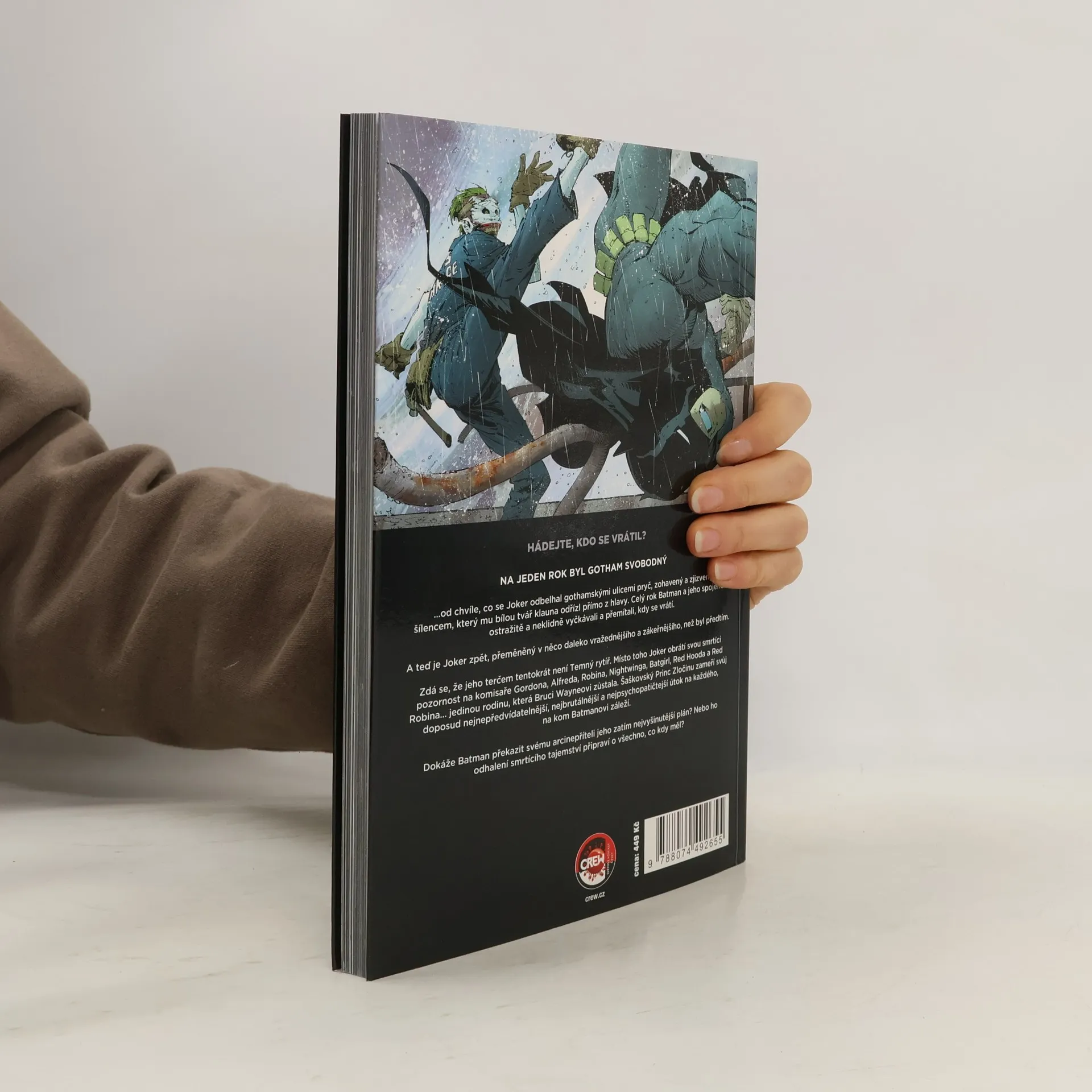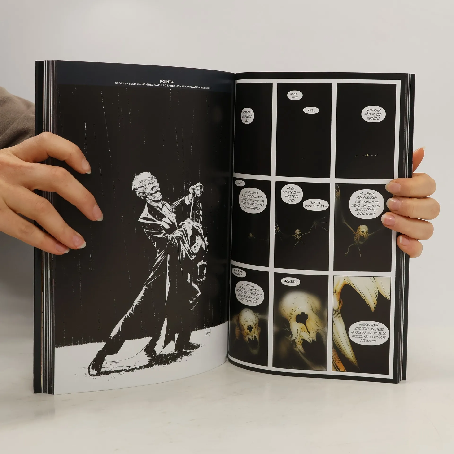Joker je zpátky. S jeho obličejem sice není všechno v pořádku, ale úsměv má na něm stále jako přišitý a hlavu má plnou nápadů, jak zničit Batmana. Tentokrát to hodlá vzít opravdu důkladně. Nestačí mu zničit temného rytíře. Chce zabít všechny. Zvládne Batman zachránit město a především všechny své blízké? Už třetí kniha z opěvované série Scotta Snydera a Grega Capulla. Pokud jste si mysleli, že nemůže být nic větší nářez než Soví tribunál a Soví město, tak vás tenhle komiks vyvede z omylu