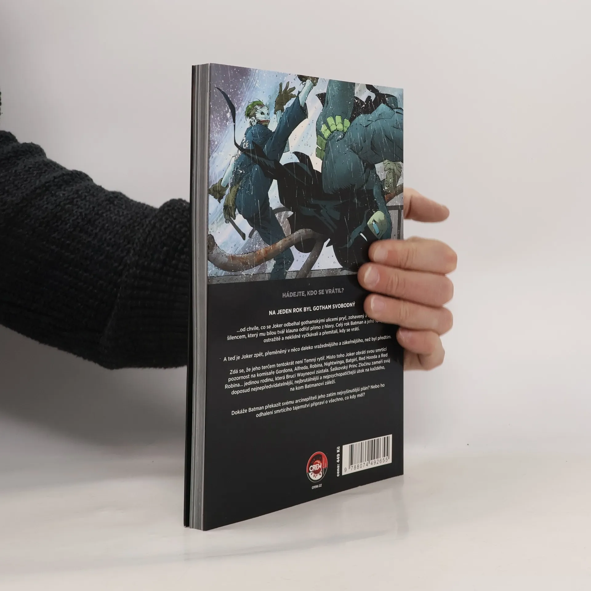 Joker je zpátky. S jeho obličejem sice není všechno v pořádku, ale úsměv má na něm stále jako přišitý a hlavu má plnou nápadů, jak zničit Batmana. Tentokrát to hodlá vzít opravdu důkladně. Nestačí mu zničit temného rytíře. Chce zabít všechny. Zvládne Batman zachránit město a především všechny své blízké? Už třetí kniha z opěvované série Scotta Snydera a Grega Capulla. Pokud jste si mysleli, že nemůže být nic větší nářez než Soví tribunál a Soví město, tak vás tenhle komiks vyvede z omylu