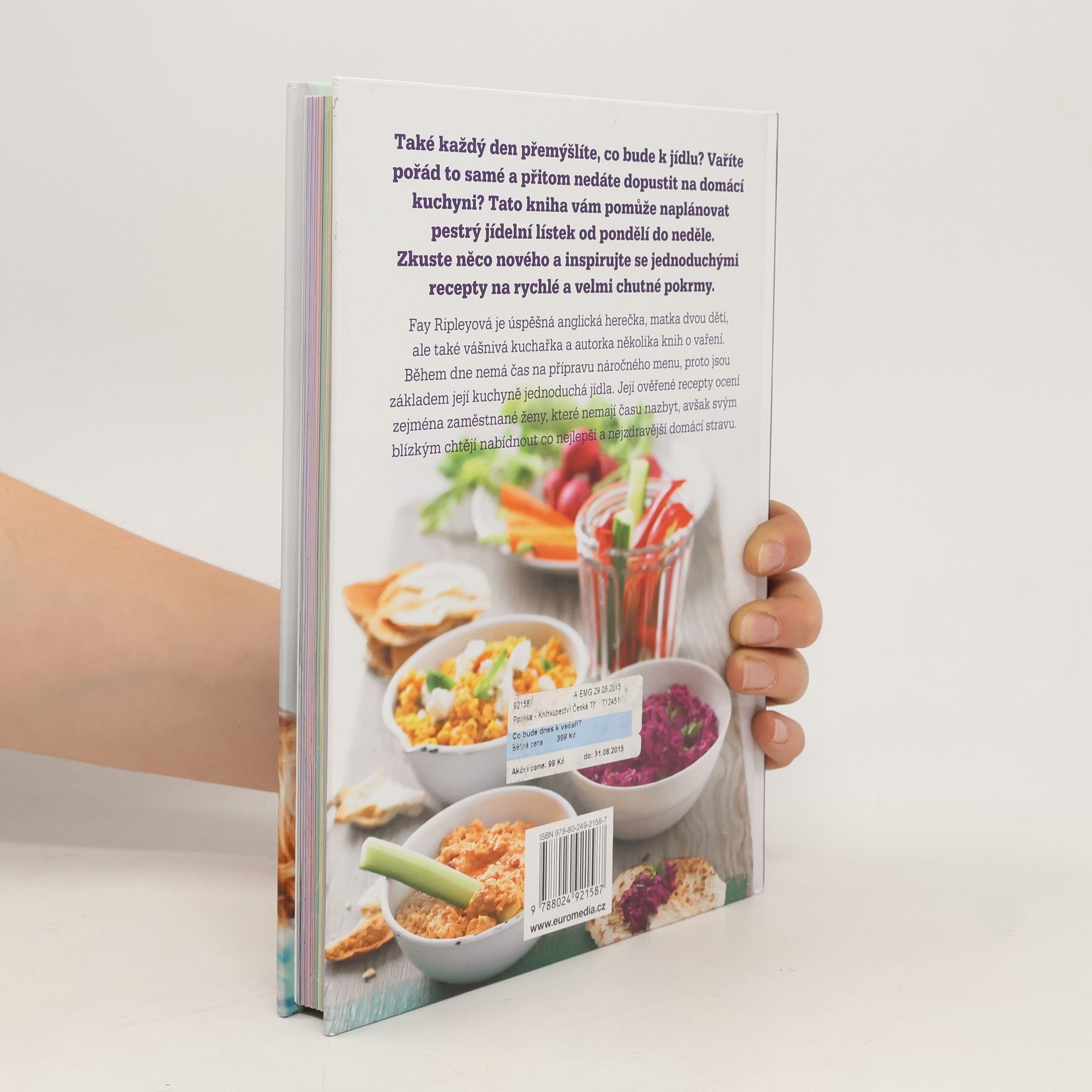 Také každý den přemýšlíte, co bude k jídlu? Fay Ripleyová je úspěšná herečka, matka dvou dětí a vášnivá kuchařka. Během dne nemá čas na přípravu náročného menu, proto jsou základem její kuchyně jednoduchá jídla. 100 jednoduchých a lahodných receptů pro každodenní vaření od pondělí do pátku ocení zejména zaměstnané ženy, které svým blízkým chtějí nabídnout co nejlepší a nejzdravější domácí stravu. Recepty fungují spolehlivě a nezapomínají chytře zužitkovat zásoby ze spíže.