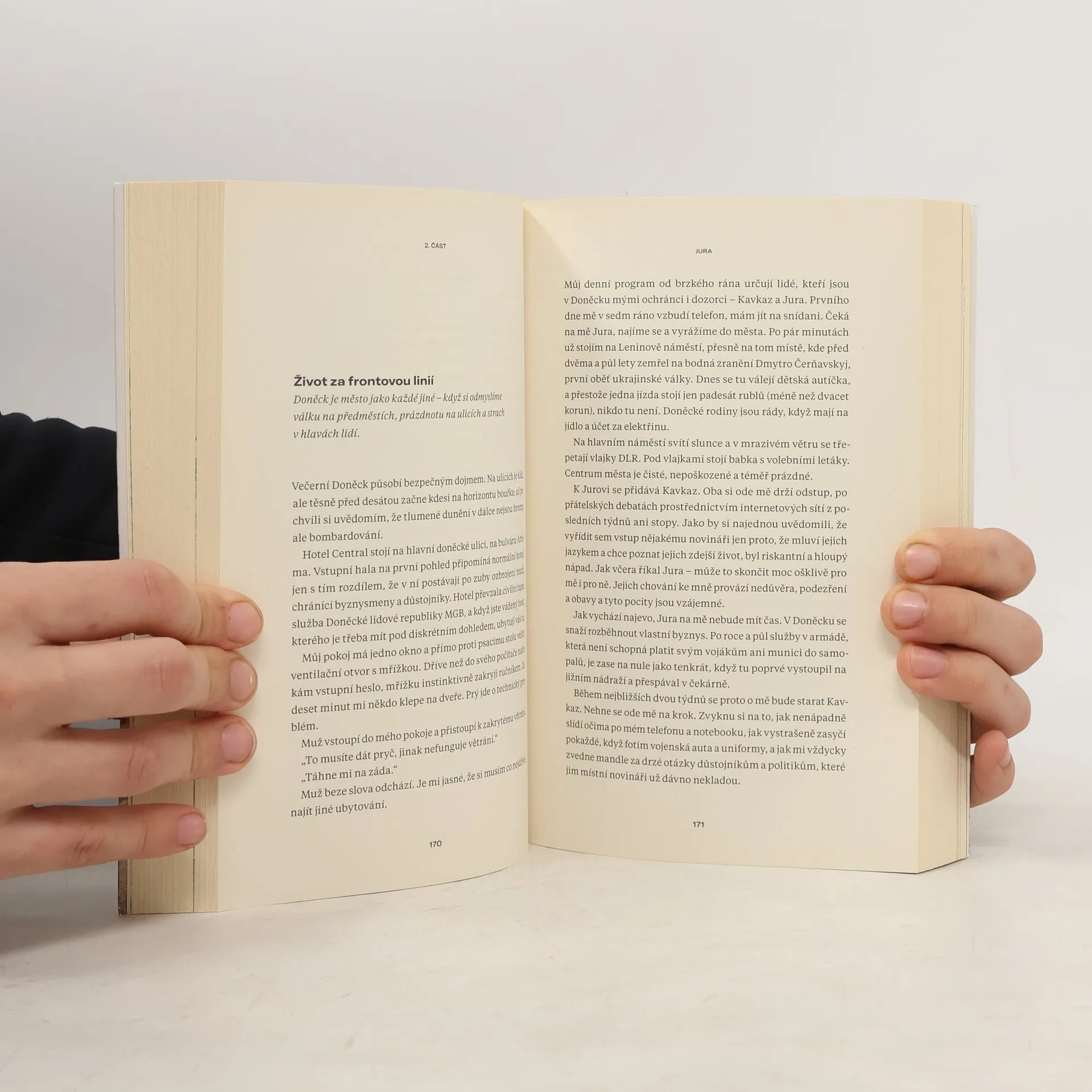 Mrazivá reportáž slovenského novináře je svědectvím z místa konfliktu, který je nám blíž, než by se zdálo. Autor na východě Ukrajiny, na obou stranách fronty, zachytil živý kaleidoskop mnoha životních příběhů: Gruzínec Mamuka bojuje s ruskou agresí s kalašnikovem v ruce už od čtrnácti let, český dobrovolník Jirka se přidal k řadám doněckých separatistů, Líza z Luhanska se smiřuje s údělem uprchlice a zneužívané ženy. Forró nevytvořil jen plastický obraz válečné každodennosti, ale také brilantní analýzu příčin konfliktů zamrzlých v prstenci obklopujícím Ruskou federaci — v gruzínské Abcházii a Jižní Osetii, moldavském Podněstří či naposled na ukrajinském Donbasu.