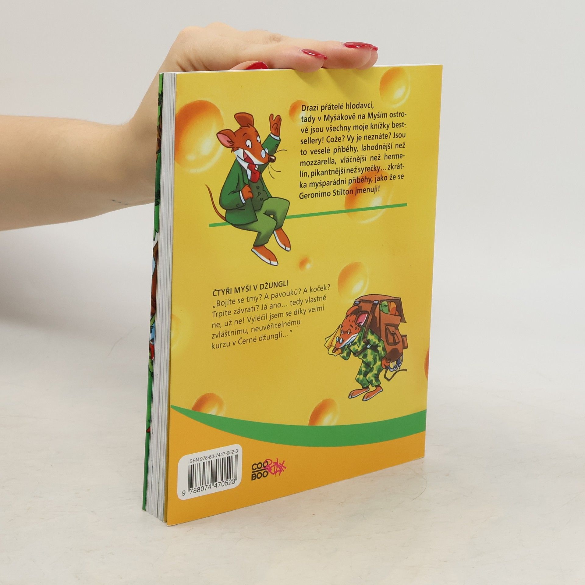 Vážení přátelé hlodavci, čekají vás další MYŠPARÁDNÍ DOBRODRUŽSTVÍ Geronima Stiltona. Jak již víte z prvního dílu, Geronimo je velice výjimečný myšák, který žije v Myšákově na podivuhodném Myším ostrově a ve volném čase sbírá historické kůrky od parmazánu z 18. století, ale hlavně strašně rád píše knihy, v nichž vypráví o svých příhodách. Tentokrát však na sbírání kůrek nebude mít ani vteřinku, ocitne se nečekaně v Černé džungli a bude muset bojovat o holý život. V příběhu se to hemží pavouky, jedovatými hady a nebezpečnými škorpióny!