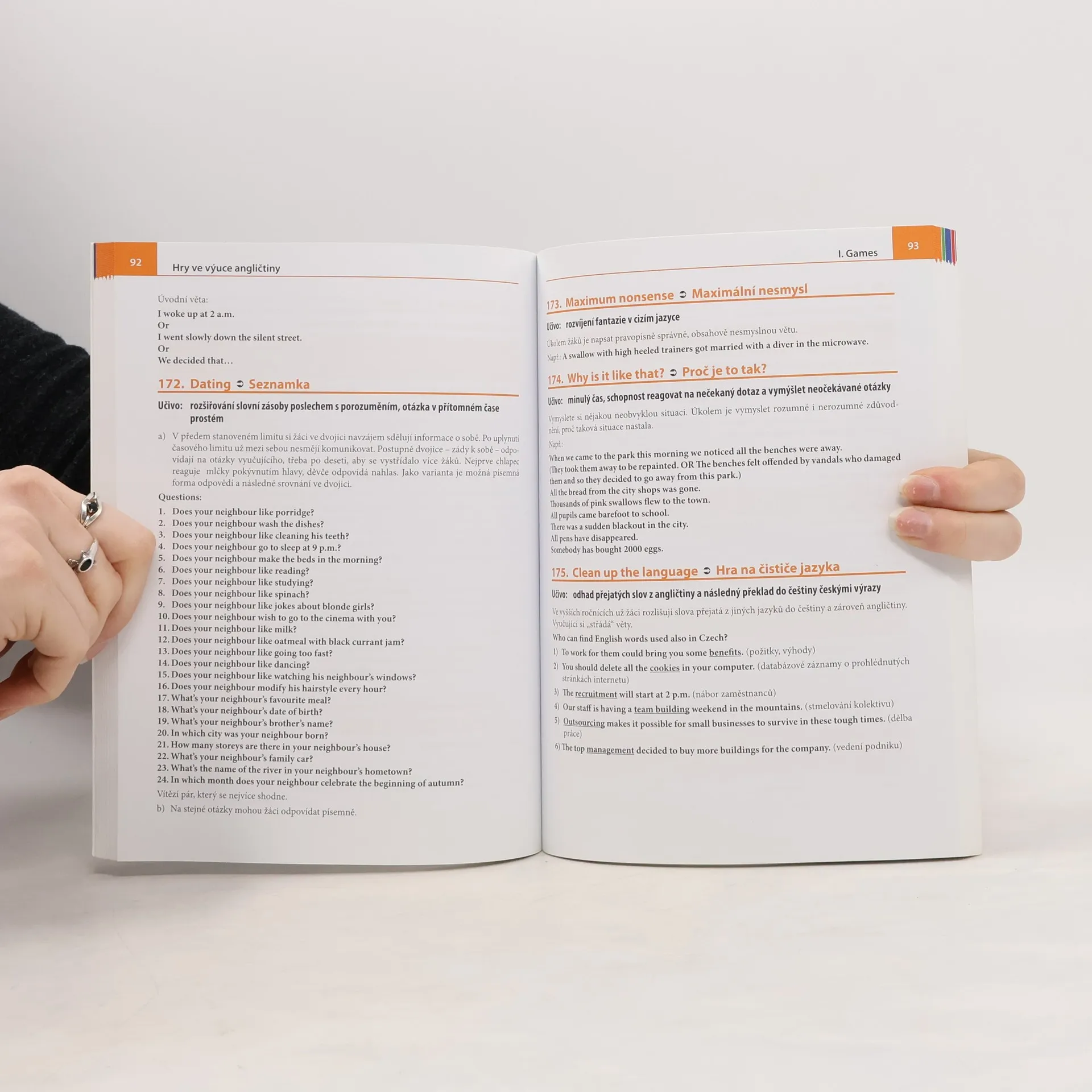 Učte angličtinu moderně, zábavně a zajímavě!!! Publikace usnadní a zpestří práci všem učitelům angličtiny na základních, středních i jazykových školách, plně je lze doporučit i budoucím učitelům angličtiny. Zařazení jazykových her do výuky přispěje k praktickému ovládnutí jazyka. Jazykové hry odstraňují potřebu překladu z mateřštiny do cizího jazyka a vytváří základy myšlení v cizím jazyce. Kniha obsahuje: - jazykové hry - logické hádanky - scénáře pohádek - tematické slovníky použitelné ve hrách Pomocí hry lze při výuce např.: - procvičit slovní zásobu - upevnit znalosti z mluvnice - prohlubovat porozumění mluvenému slovu - rozvíjet schopnost samostatného hovoru… Hry jsou rozděleny podle jazykových úrovní, což nasměruje učitele při výběru vhodné obtížnosti.