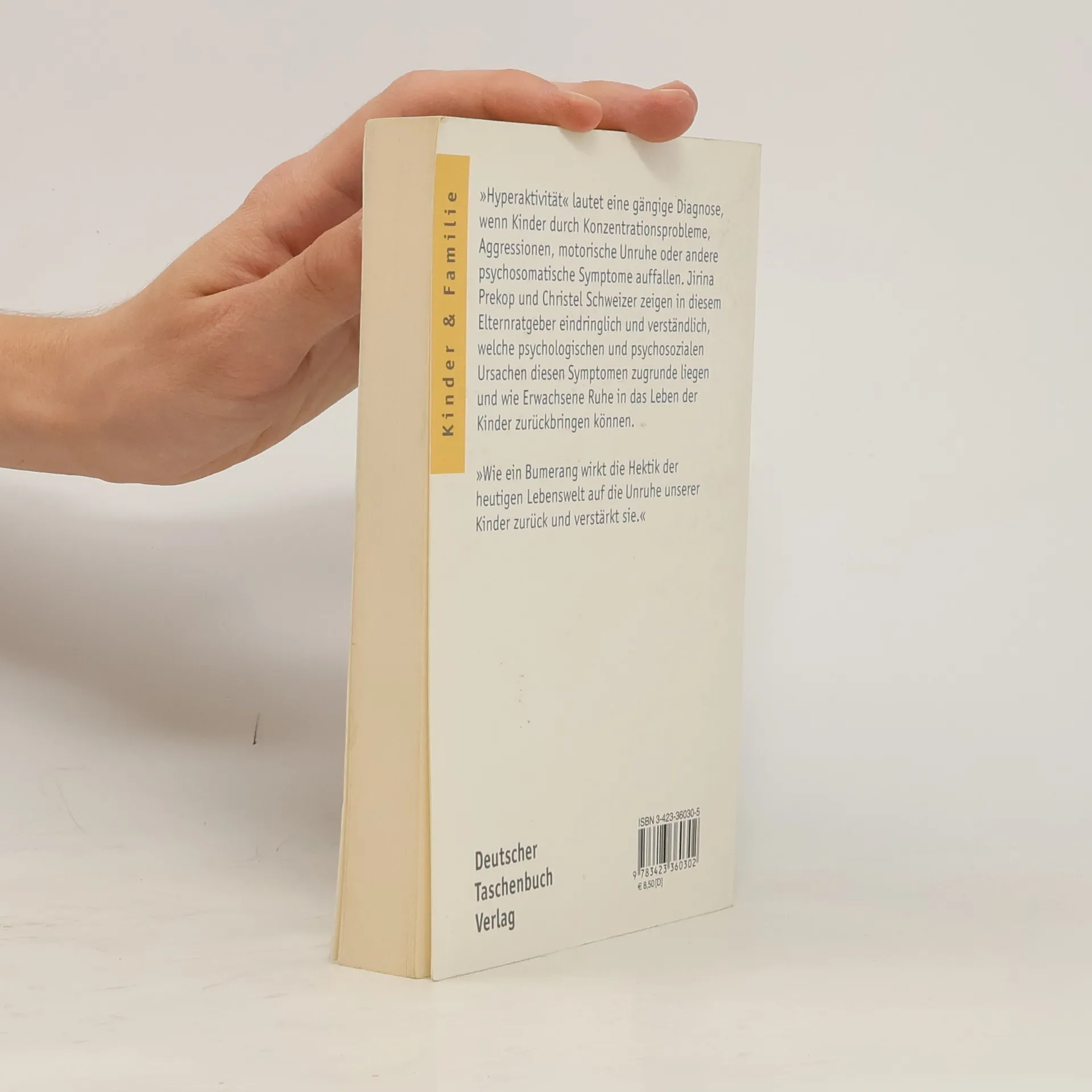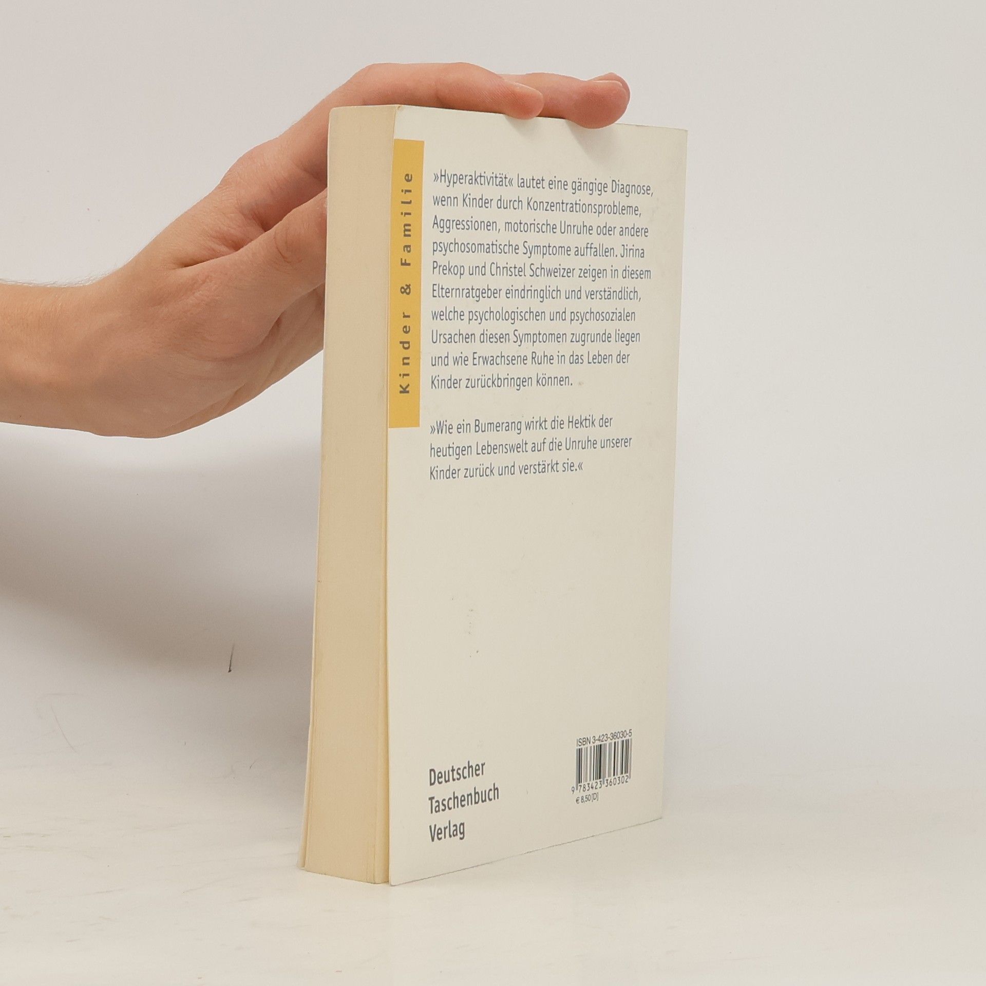 »Hyperaktivität« lautet eine gängige Diagnose, wenn Kinder durch Konzentrationsprobleme, Aggression, motorische Unruhe oder andere psychosomatische Symptome auffallen. Jirina Prekop und Christel Schweizer zeigen in diesem Elternratgeber eindringlich und verständlich, welche psychologischen und psychosozialen Ursachen diesen Symptomen zugrunde liegen und wie Erwachsene Ruhe in das Leben der Kinder zurückbringen können.