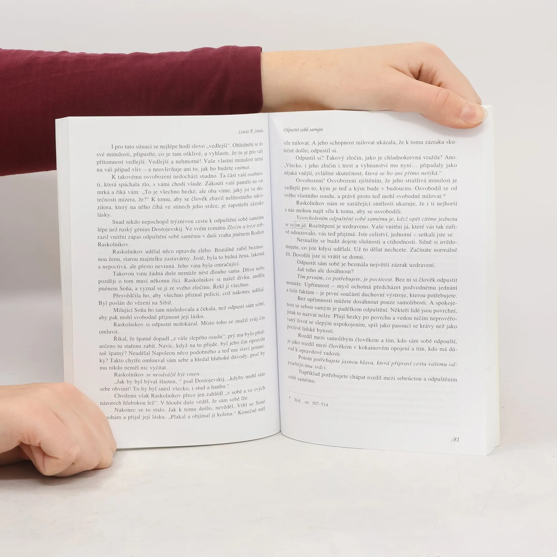 Jak být uzdraven z ran, které si nezasloužíme. Smedes. B. Lewis ve své práci citlivě rozebírá důvody, proč se navzájem zraňujeme: protože si myslíme, že si to druzí zaslouží; protože můžeme být v zajetí nutkavých představ; protože se nedokážeme vyrovnat s důsledky vlastních problémů; protože děláme chyby; protože naše dobré úmysly mohou být špatně pochopeny. Z tohoto hlubokého vnitřního poranění, které nás sžírá a okrádá o radost ze života, můžeme najít východisko. Tím je přiznání si bolesti, kterou prožíváme, vyrovnání se s ní a odpuštění tomu, kdo nás zranil.
