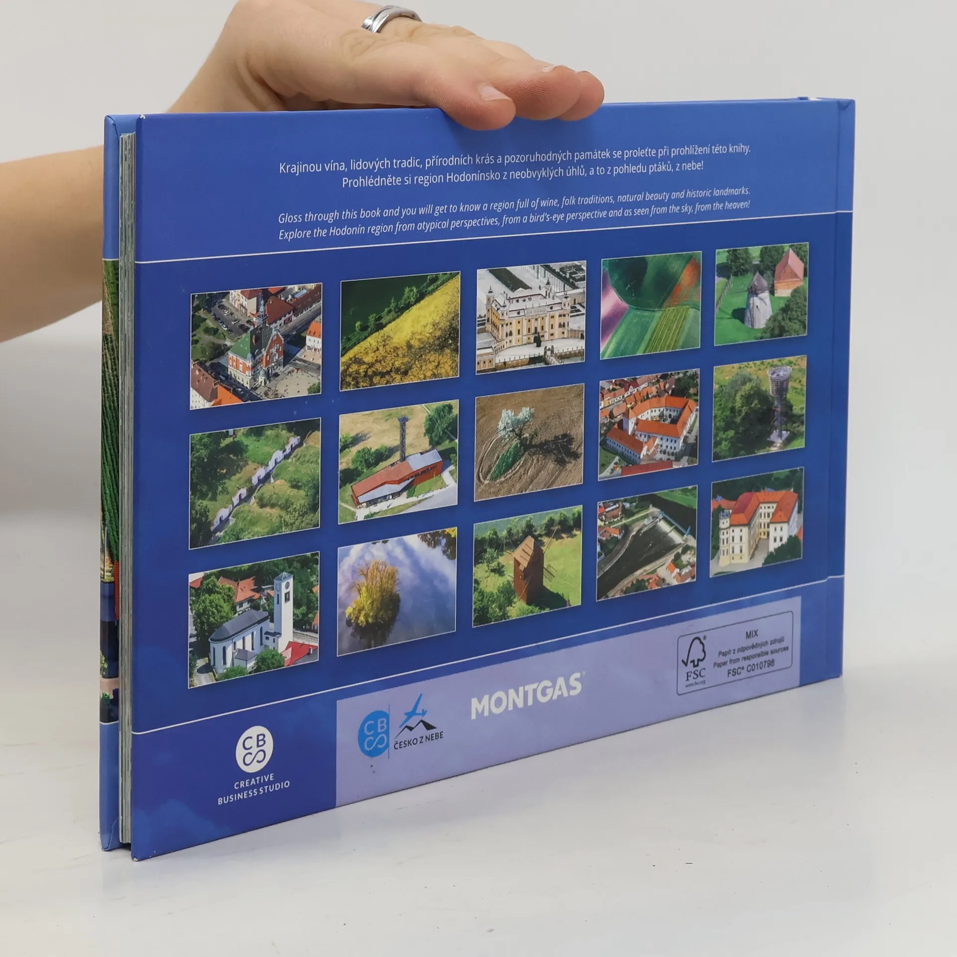 Kraj protkaný vinicemi, řadou přírodních krás, okouzlujících památek a hlavně živými lidovými tradicemi, to je region Hodonínsko. Tato kniha Vás zavede na místa notoricky známá, ale poznáte je z úplně jiného pohledu, z nebe. Pohledem, který je vlastní jen ptákům a letcům, si nyní můžete vychutnat například město Hodonín s krásnou radnicí na náměstí a okolím, v Mikulčicích uvidíte z výšky nejrozsáhlejší staroslovanské archeologické naleziště v Česku z dob Velké Moravy, dále města Milotice, Kyjov, Bzenec, Vracov, Veselí nad Moravou, spoustu zajímavých pohledů na malebné vesnice s vinicemi a vinnými sklípky, které jsou v tomto kraji kulturní památkou. Pastvou pro oči jsou přírodní scenérie Moravského Toskánska i zdejší větrné mlýny.