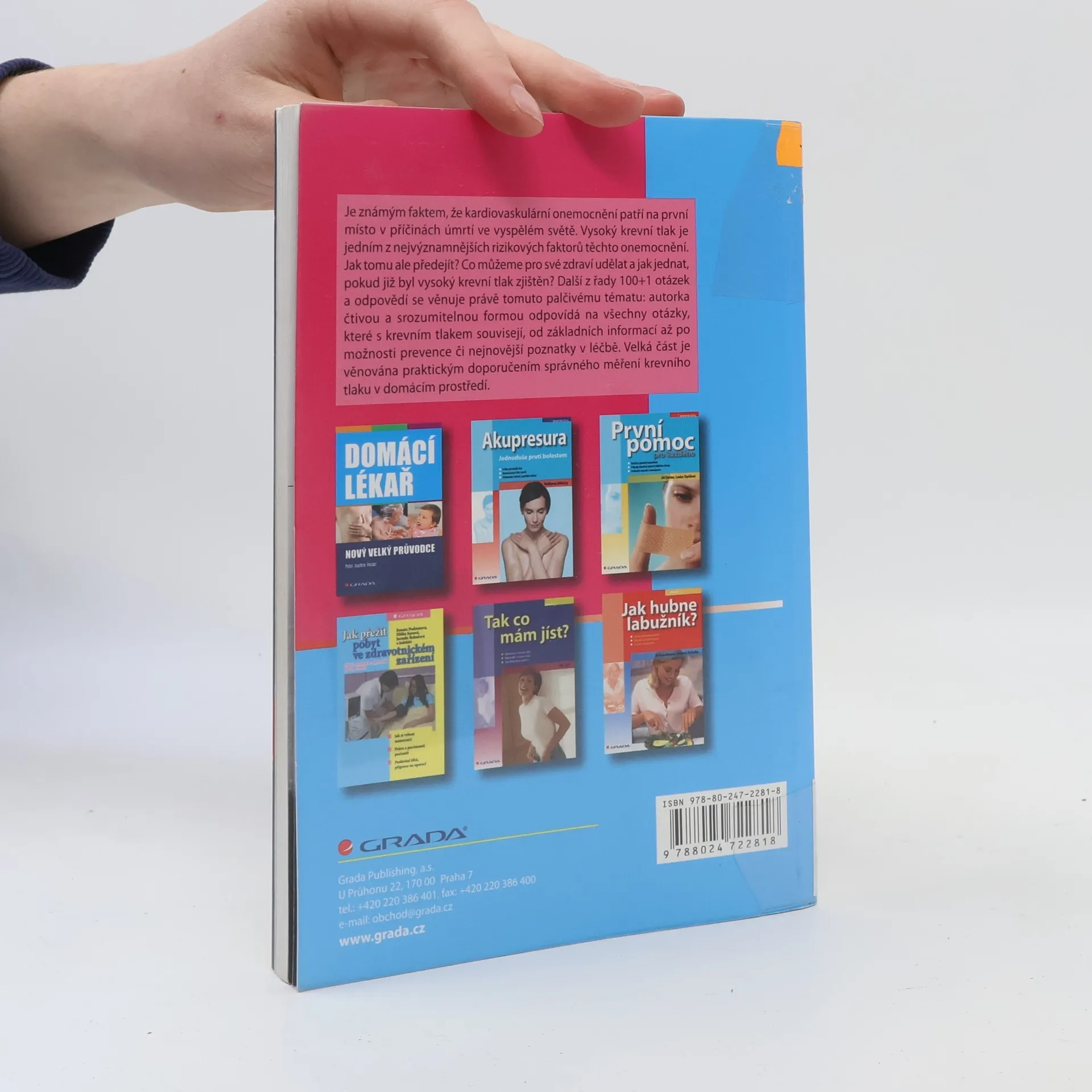 Je známým faktem, že kardiovaskulární onemocnění patří na první místo v příčinách úmrtí ve vyspělém světě. Vysoký krevní tlak je jedním z nejvýznamnějších rizikových faktorů těchto onemocnění. Jak ale těmto rizikovým faktorům předejít? Co můžeme pro své zdraví udělat a jak jednat, pokud již byl vysoký krevní tlak zjištěn? Další z řady 100+1 otázek a odpovědí se věnuje právě tomuto palčivému tématu: autorka čtivou a srozumitelnou formou odpovídá na všechny otázky, které s krevním tlakem souvisejí, od základních informací až po možnosti prevence či nejnovější poznatky v léčbě. Velká část je věnována praktickým doporučením správného měření krevního tlaku v domácím prostředí.