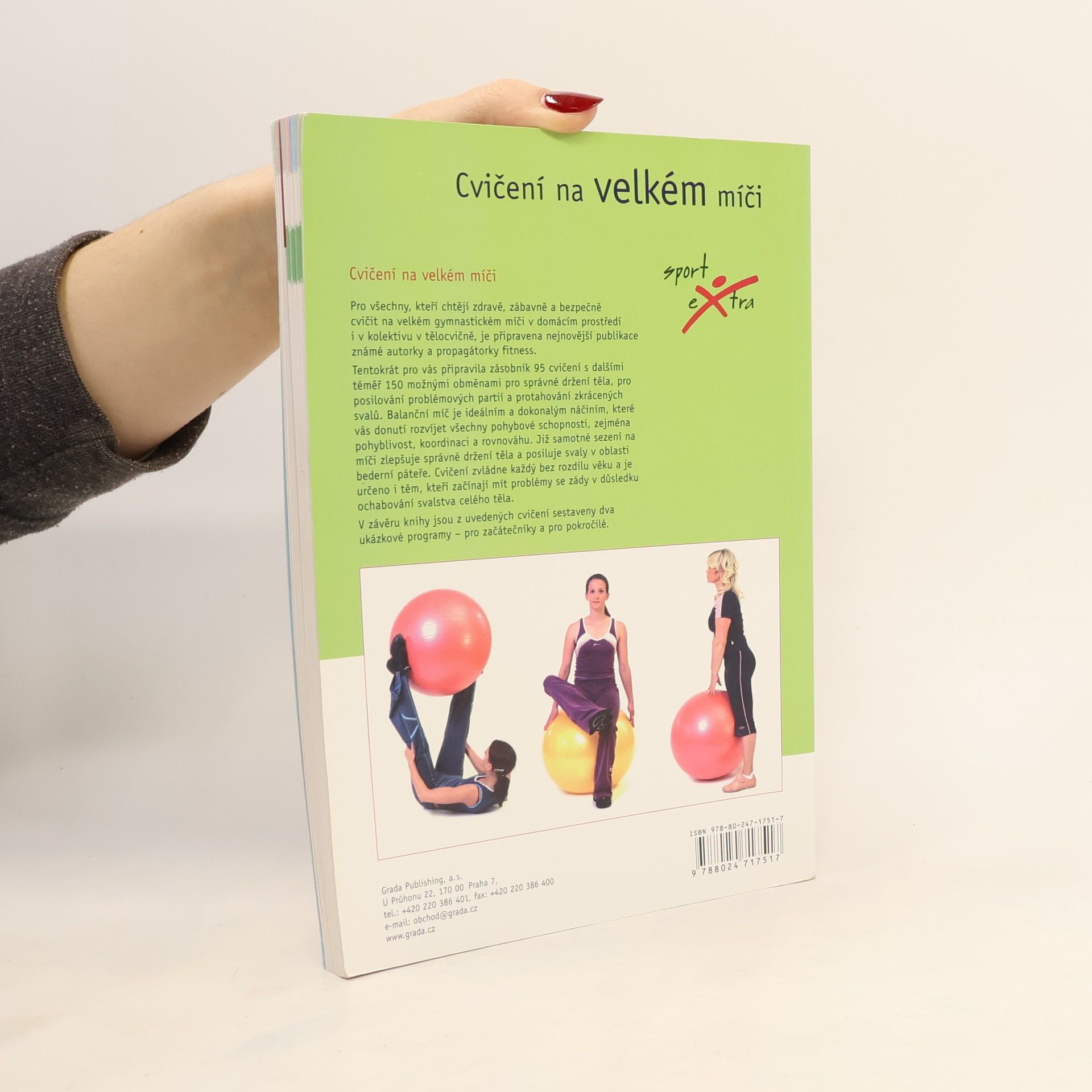 Pro všechny, kteří chtějí zdravě, zábavně a bezpečně cvičit na gymnastickém míči v domácím prostředí, je připravena nejnovější publikace známé autorky a propagátorky fitness. Tentokrát pro vás připravila zásobník 95 cvičení s dalšími téměř 150 možnými obměnami pro správné držení těla, k posilování problémových partií a k protahování zkrácených svalů. Balanční míč je ideálním a dokonalým náčiním, které Vás donutí rozvíjet všechny pohybové schopnosti, zejména pohyblivost, koordinaci a rovnováhu. Již samotné sezení na míči zlepšuje správné držení těla a posiluje svaly v oblasti bederní páteře. Cvičení zvládne každý bez rozdílu věku a je určeno i těm, kteří začínají mít problémy se zády v důsledku ochabování svalstva celého těla. V závěru knihy jsou z uvedených cvičení sestaveny tři ukázkové programy – pro začátečníky, pro pokročilé a jeden speciální pro těhotné.